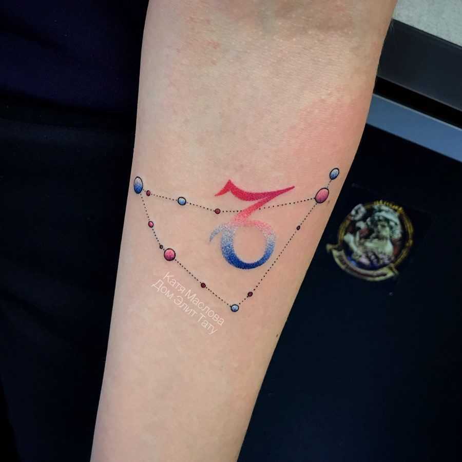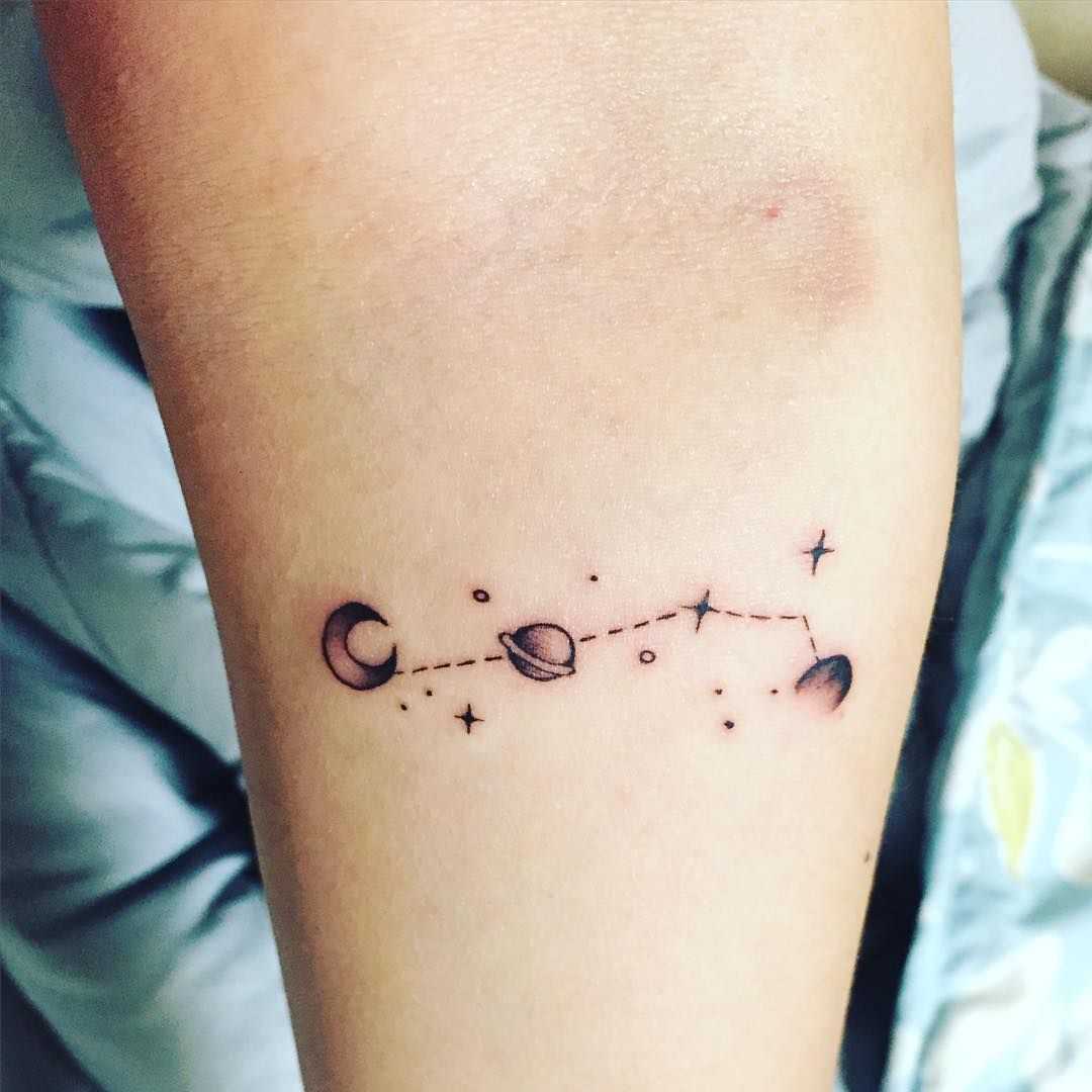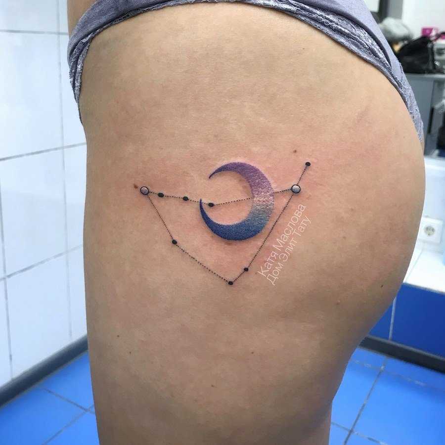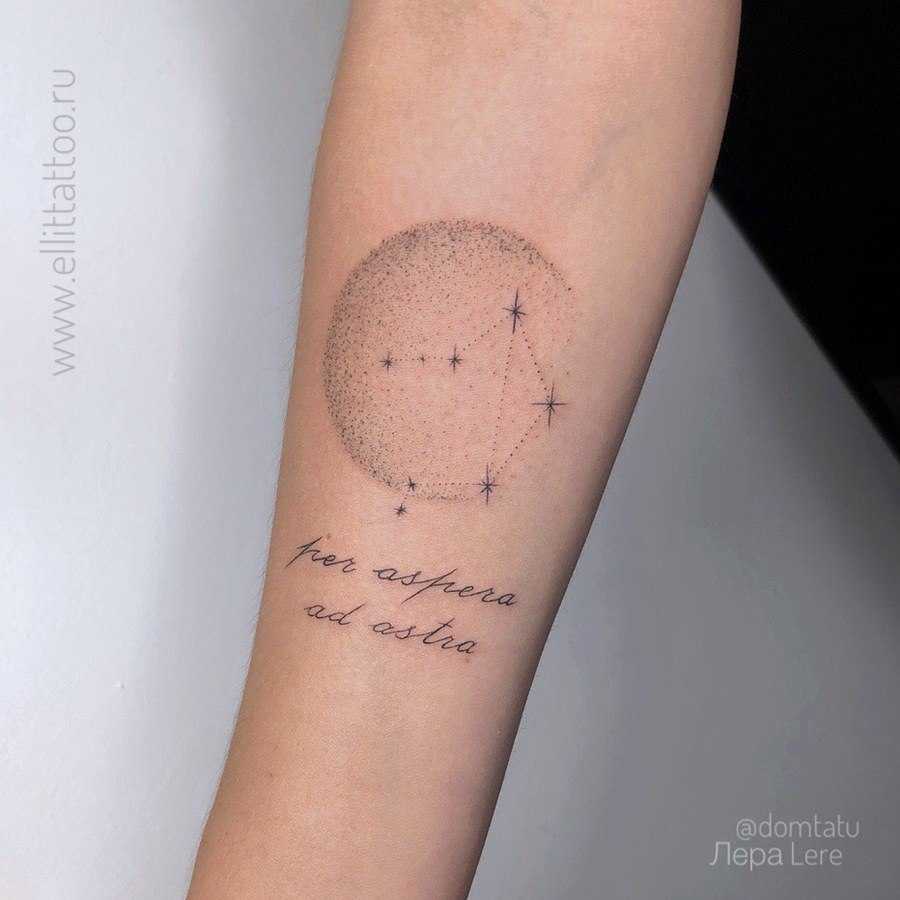 - Изображение созвездия. Такие тату чаще всего набиваются в качестве амулетов. Они оберегают владельца от зла, указывают верное направление в жизни.