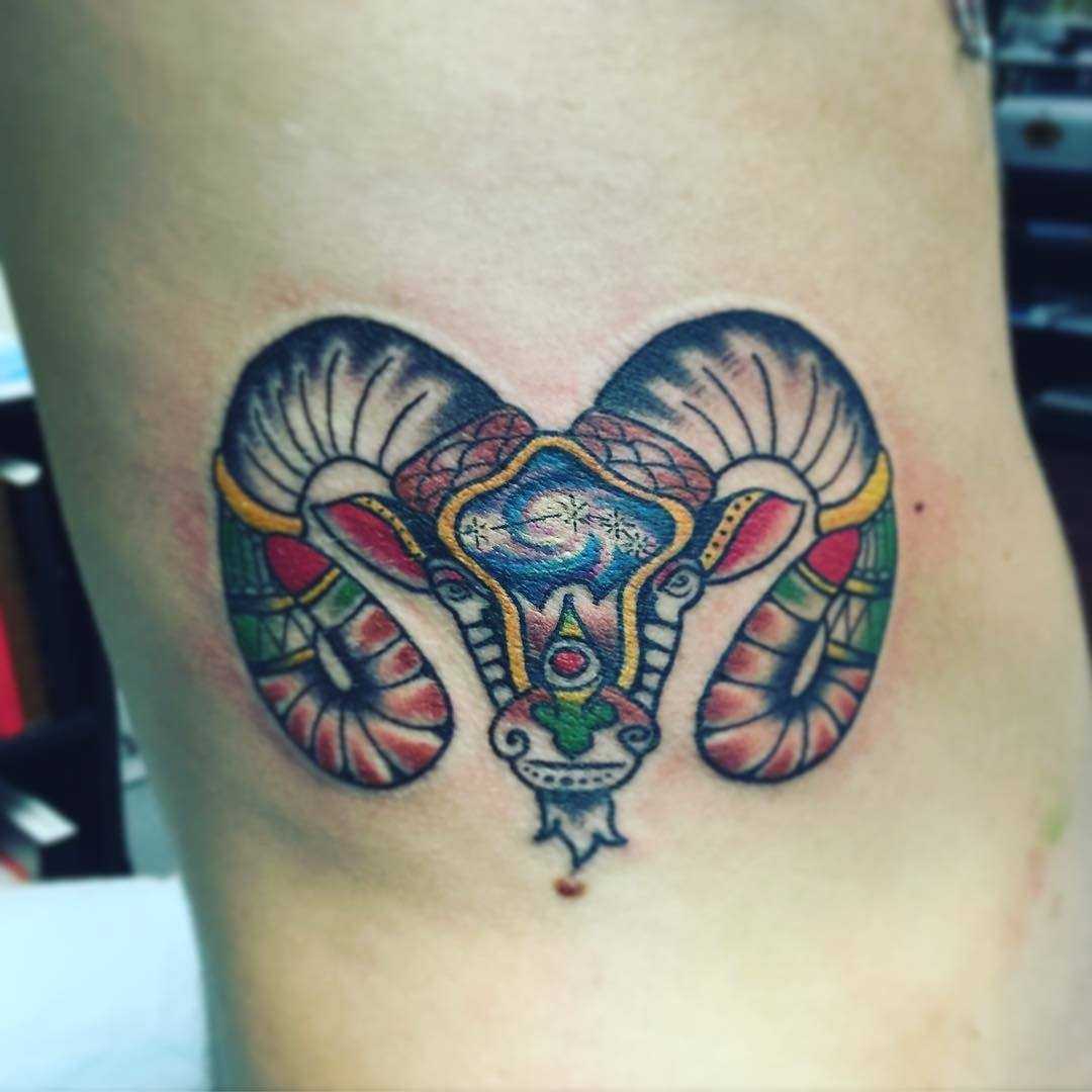 К знаку зодиака Овен относятся люди, рожденные в период с 21 марта по 20 апреля. Традиционно именно представители этого знака зодиака предпочитают изображать на своем теле это тату. Для них Овен служит своеобразным талисманом.