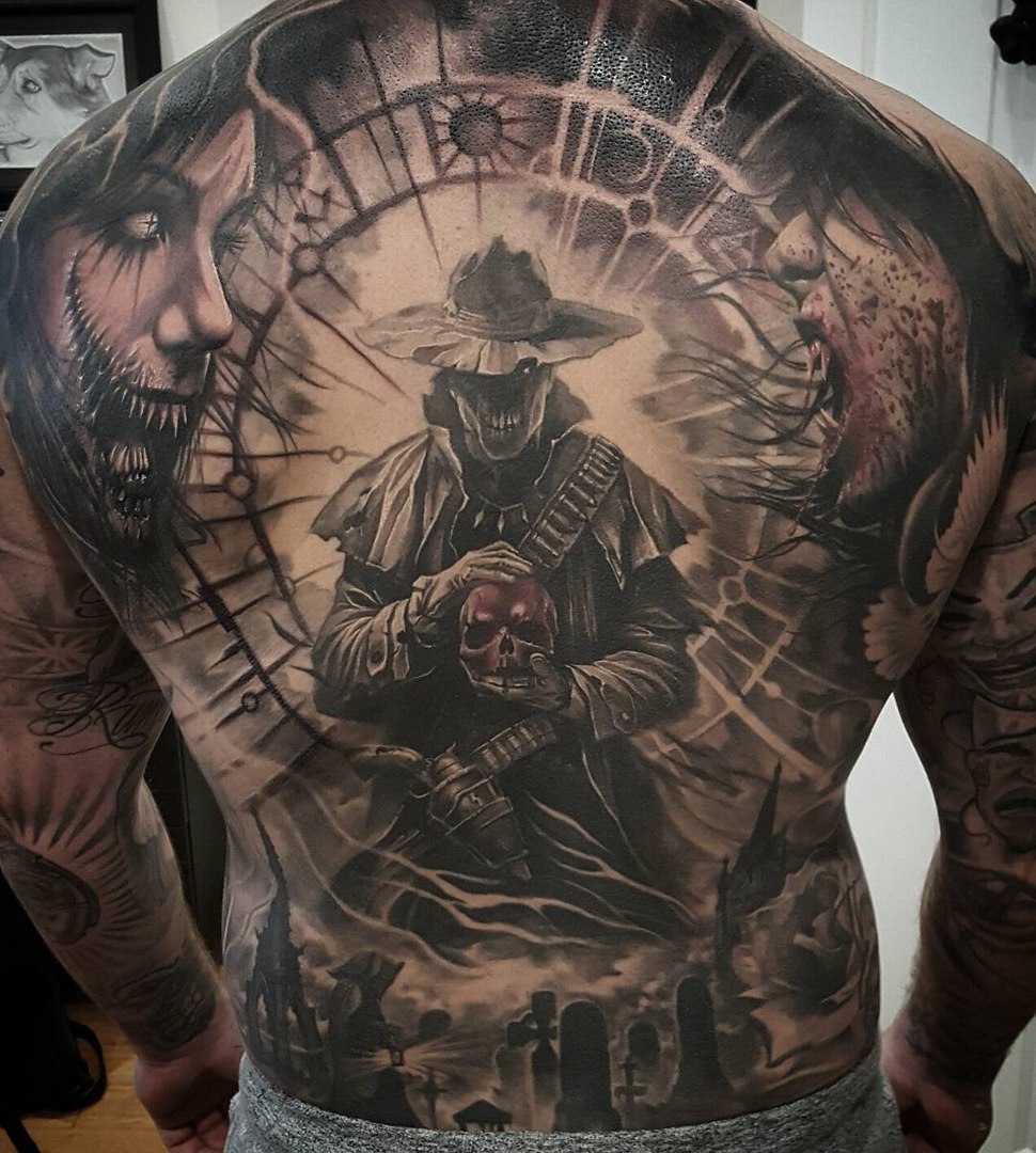 На спине больше всего места для воплощения эскизов в жизнь. Но вы должны быть готовы к тому, что это займет много времени.