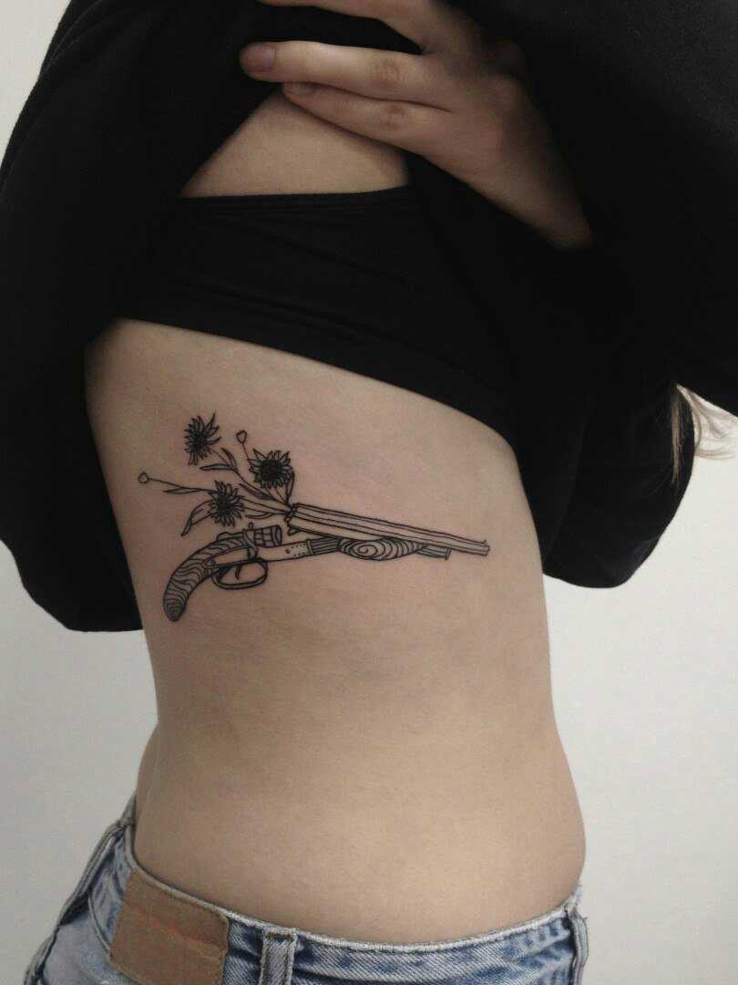 Тату на ребрах – это прям дитятко под сердцем. Сакральный рисунок можно набить в интимной зоне, куда не каждому дано попасть. Зато летом в раздельном купальнике можно открыть свое тело и покрасоваться. Но захватите на всякий случай еще и сдельный купальник, чтобы мамка ни о чем не узнала, а то на фотографиях с отдыха можно спалиться.