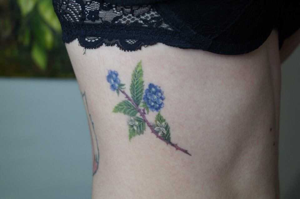 На бедрах популярны татуировки у девушек. Там они наносят изображения цветов, узоров и животных. Подходящими стилями являются япония, орнаментал, реализм, дотворк. Для парней тоже подойдут узоры в стиле орнаментал, с элементами дотворка. Но рисунки в стилях скетч и трэш полька выглядят поинтереснее.