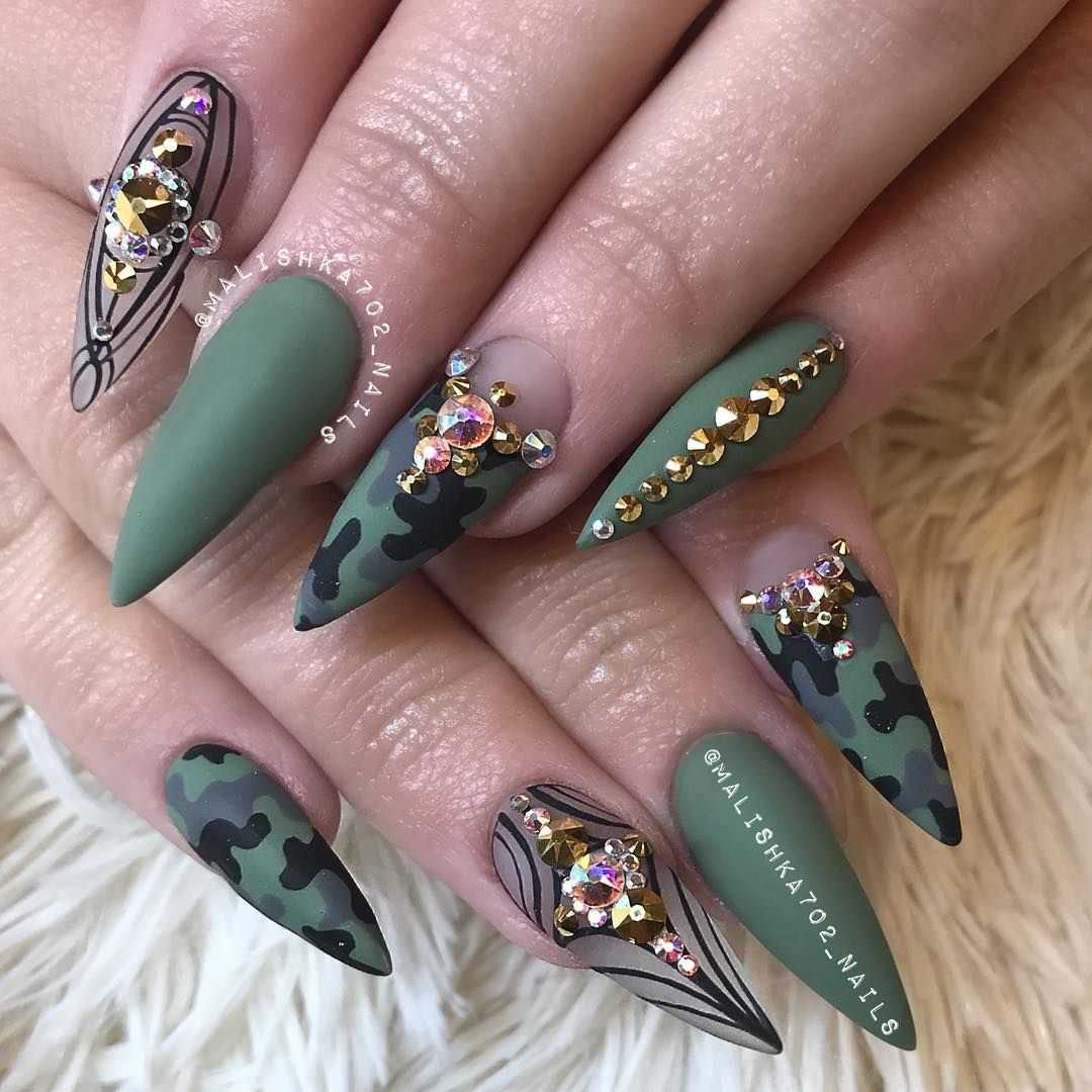 И не будем забывать о том, что хаки прочно ассоциируется с военной формой. Это отличный повод сделать маникюр с камуфляжным рисунком. Особенно актуален такой дизайн на соответствующие праздники или под определенный стиль в одежде.