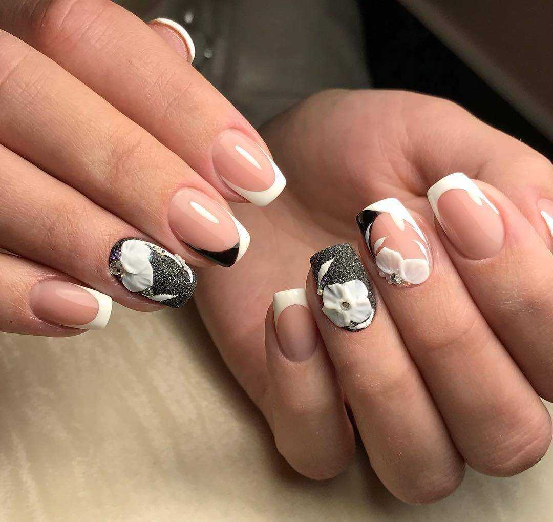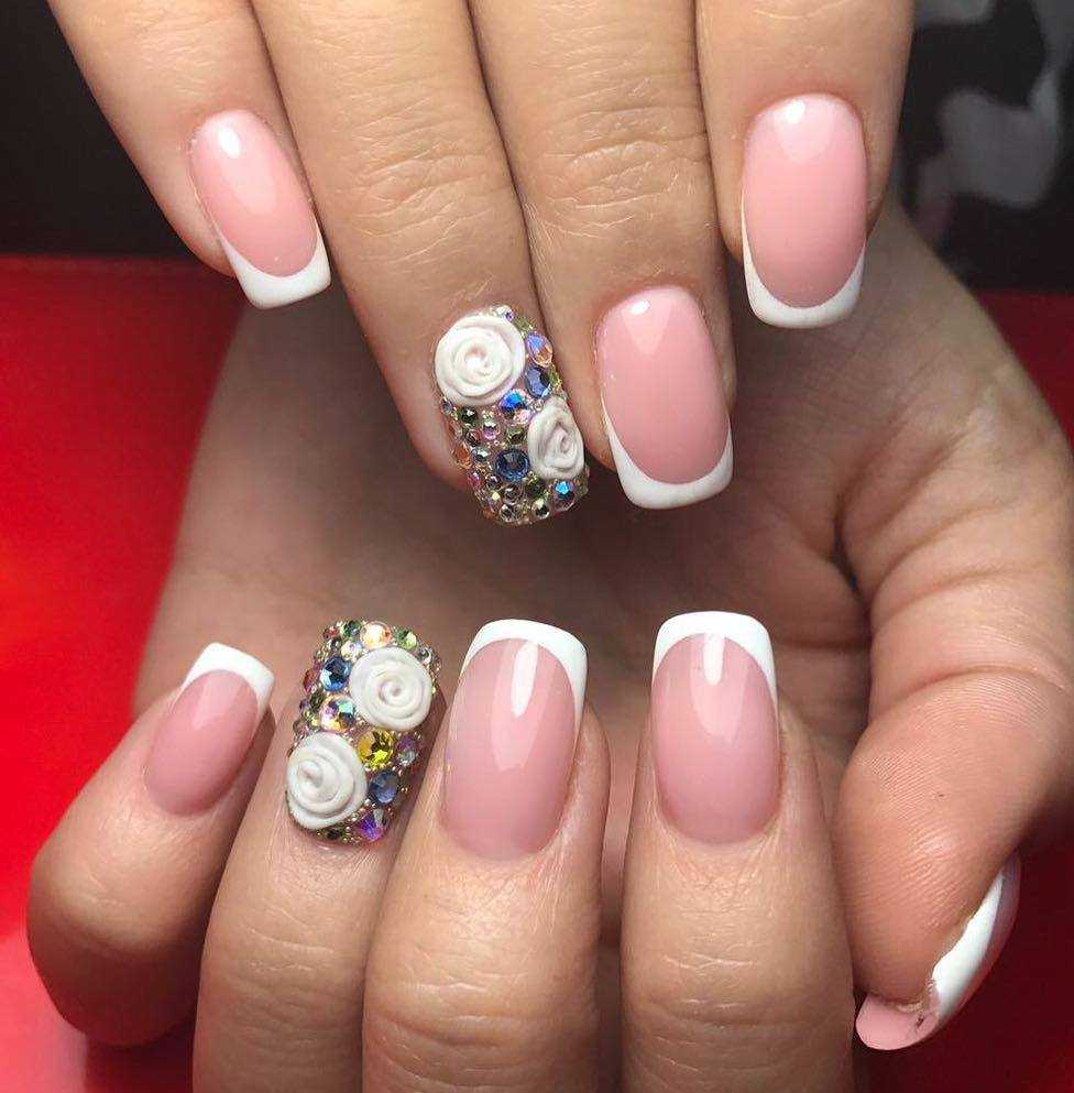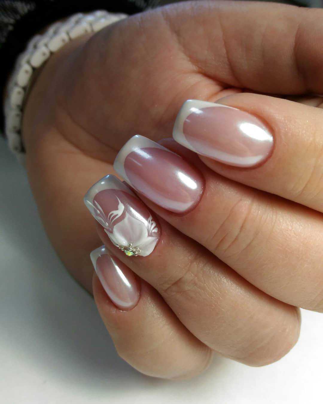 При этом совершенно не важно, это всего один цветок или целая цветочная композиция. Объединив их с французским маникюром, вас можно будет назвать эталоном элегантности
