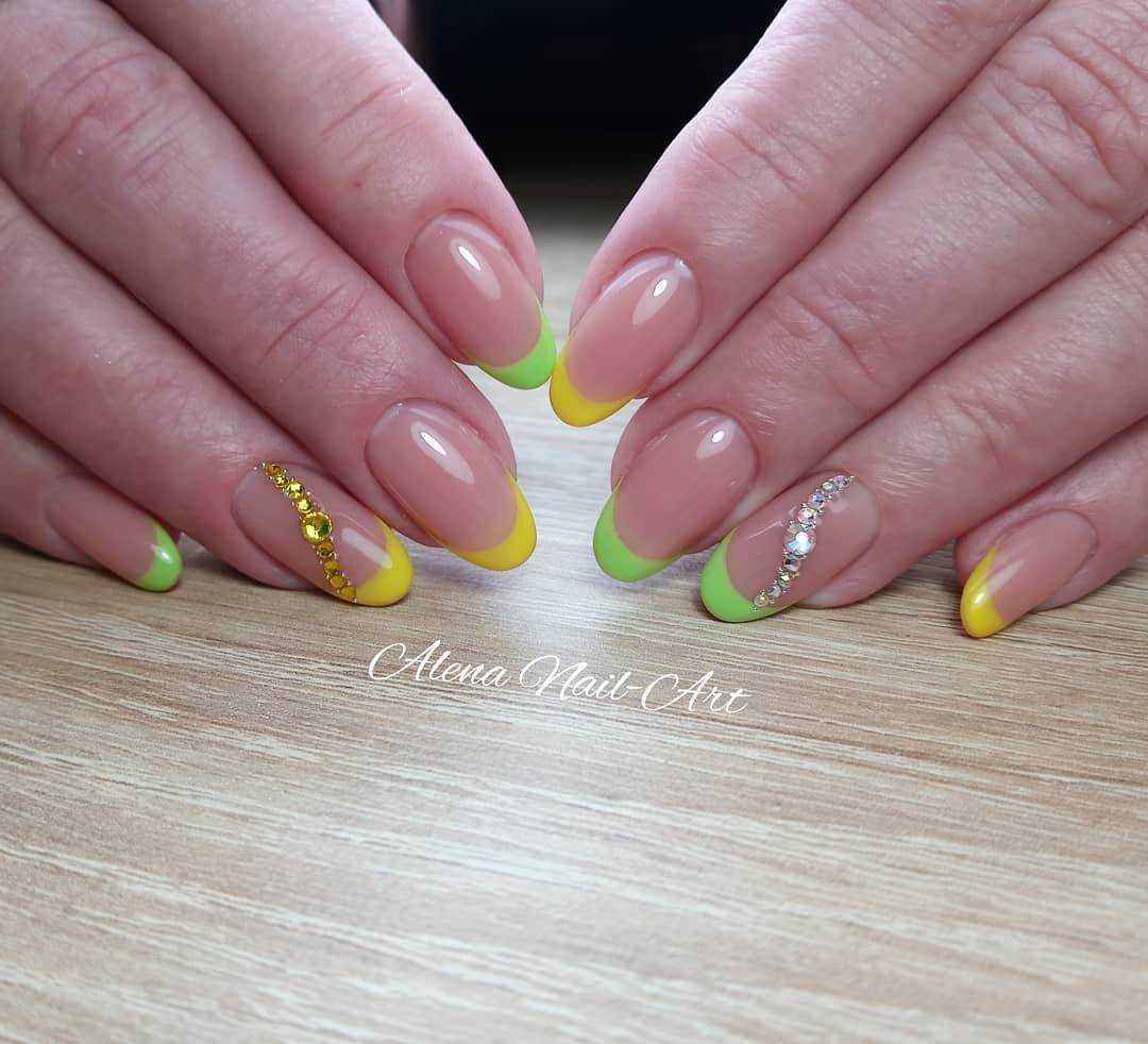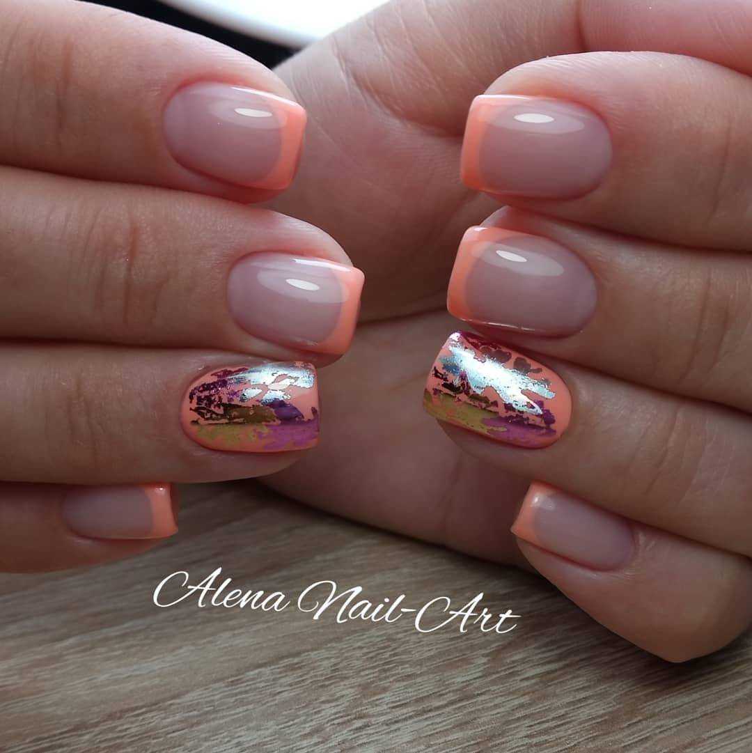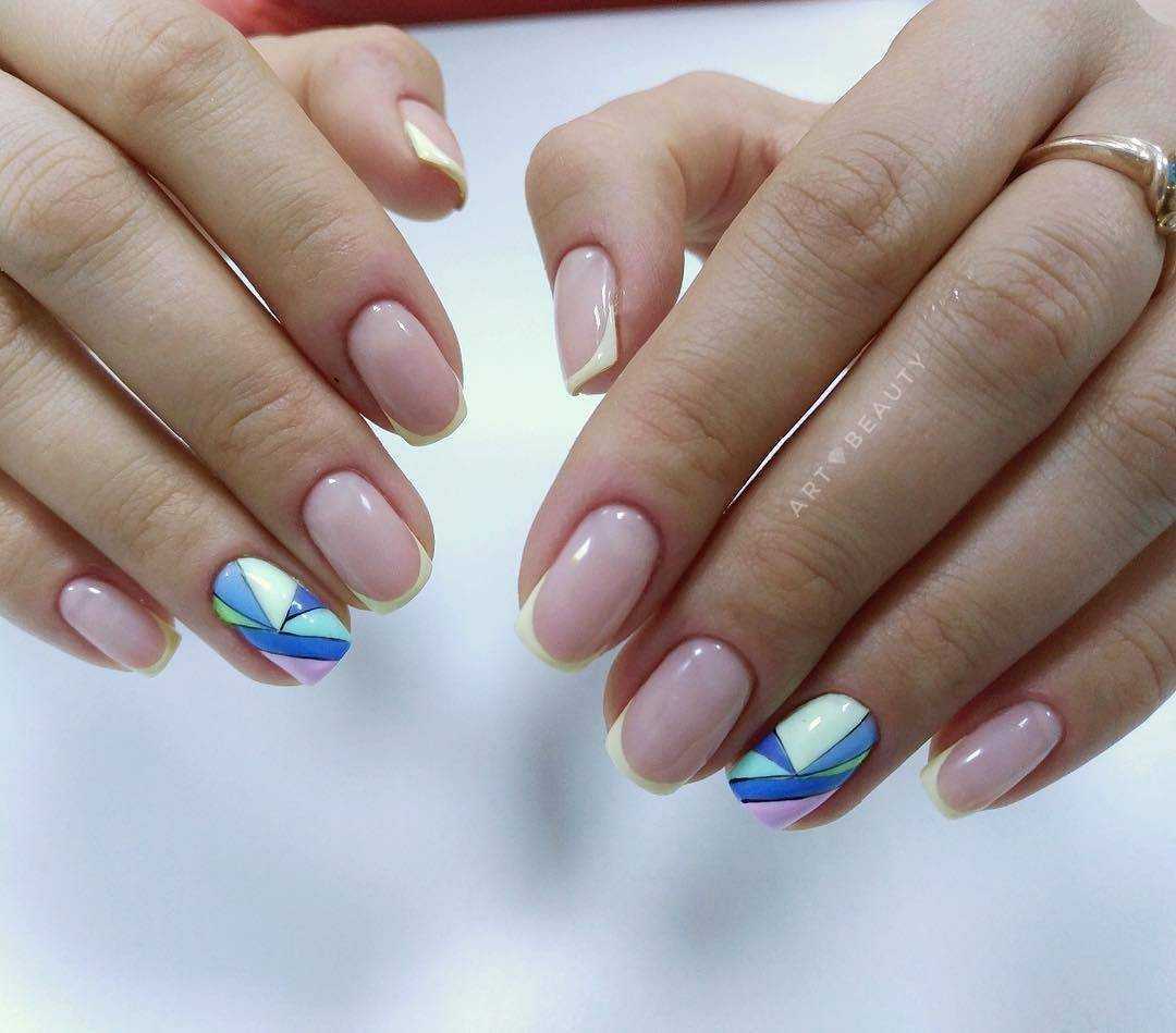 Разноцветный френч на коротком миндале может выглядеть нелепо и вульгарно. В предстоящих сезонах на такой форме не следует делать маникюр с использованием более 3 оттенков гель-лака.