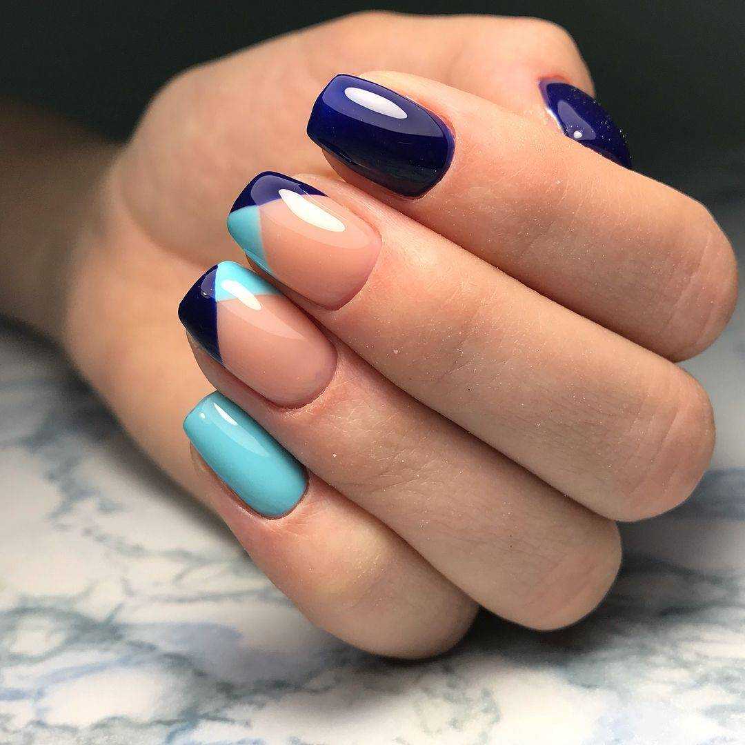 Для коротких ногтей подойдет дизайн из двух разных цветов. Такое оформление подходит для активных и спортивных мероприятий.