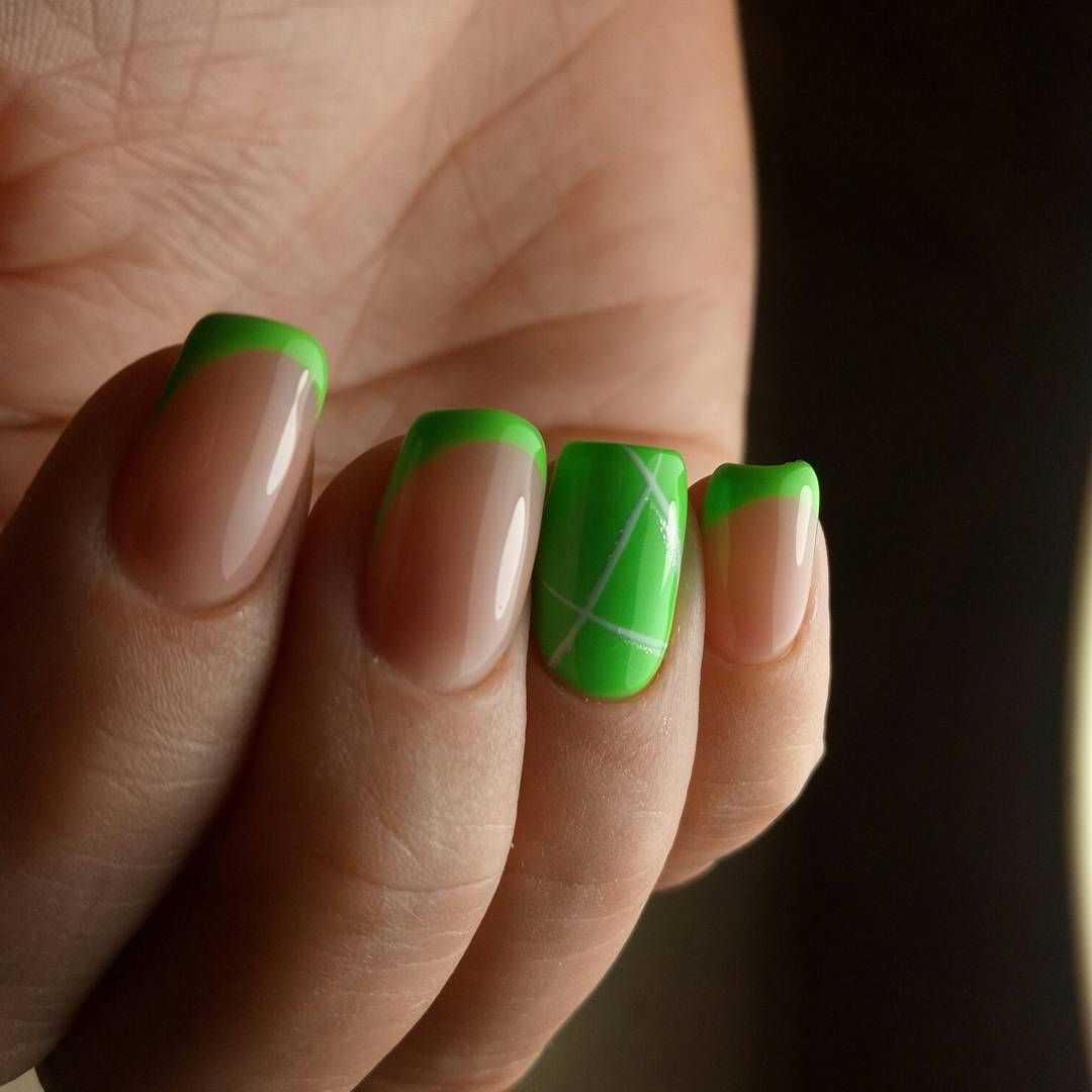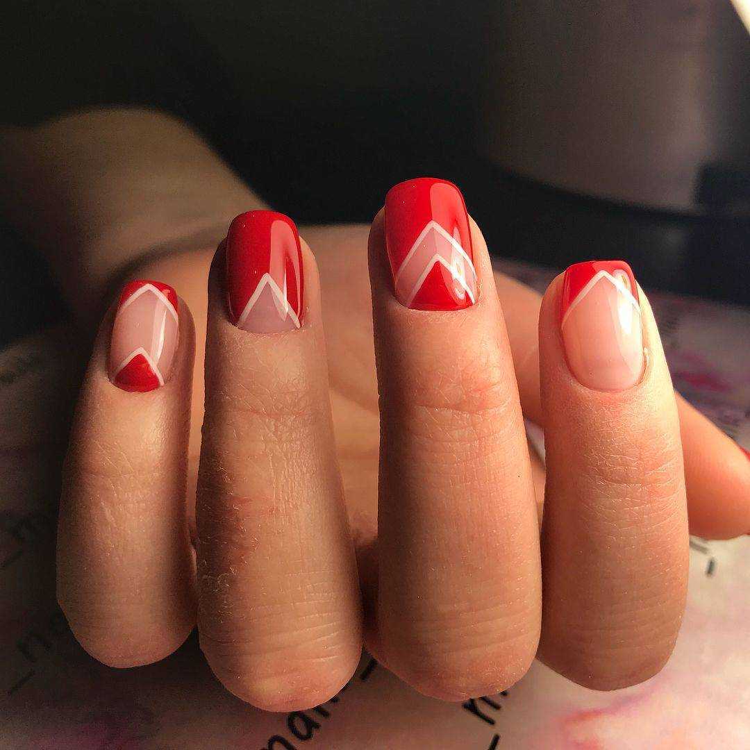 Геометрический рисунок уже длительное время входит в топ самых стильных видов дизайна ногтей. Он хорошо смотрится с френчем и делает его чуть более строгим, сдержанным. При желании его можно делать даже для рабочих будней. Но учитывайте, что в такой ситуации оттенки должны быть нейтральными.