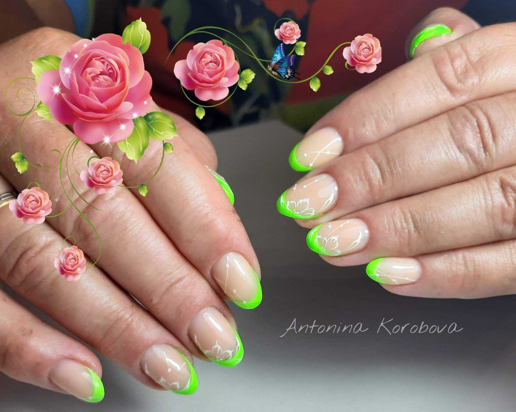 Цветочные мотивы станут идеальным дополнением французского маникюра. Ведь даже по отдельности они являются образцом женственности и утонченности
