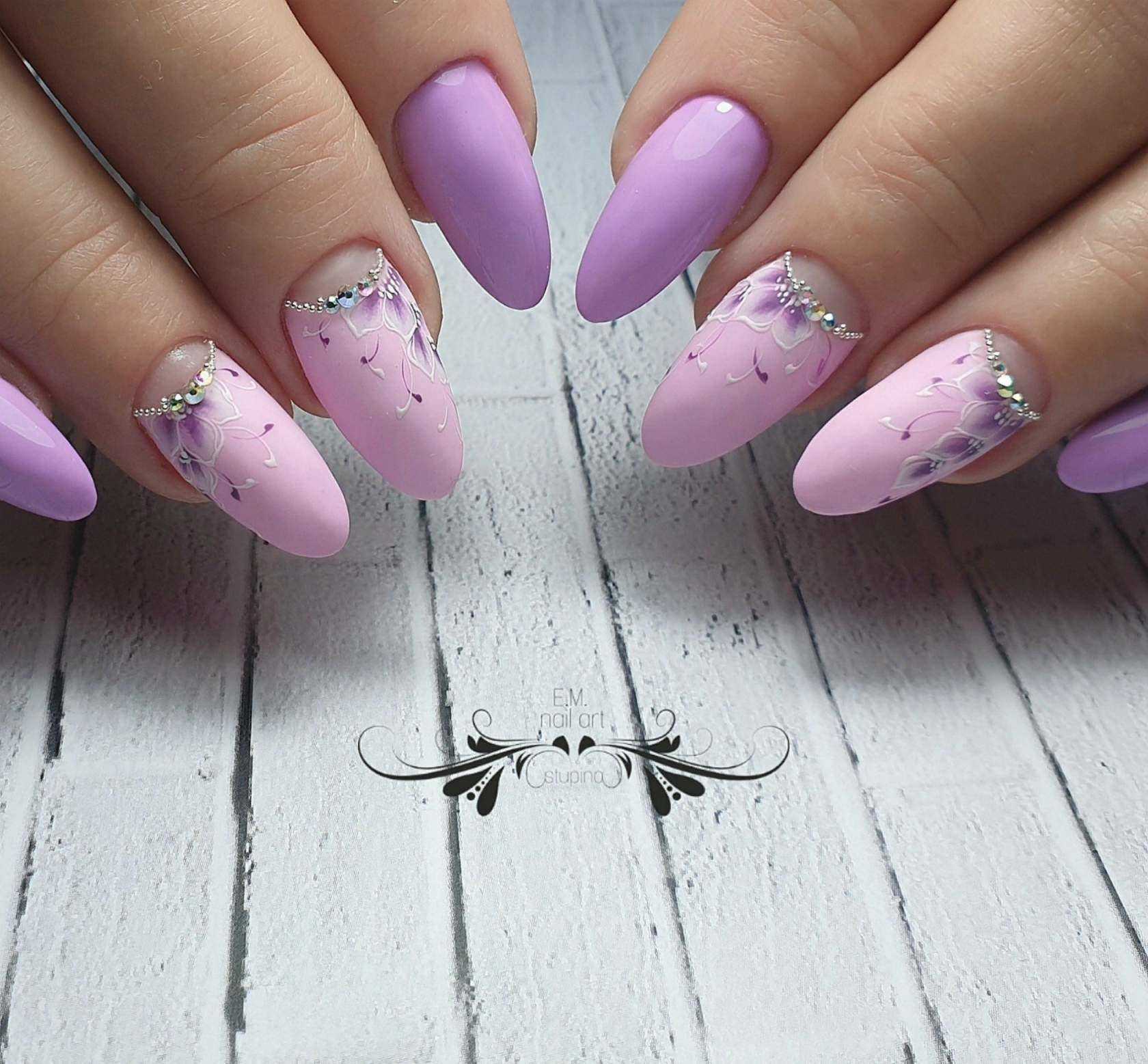 Для формы «стиллет» идеально подходят следующие варианты оформления ногтей: