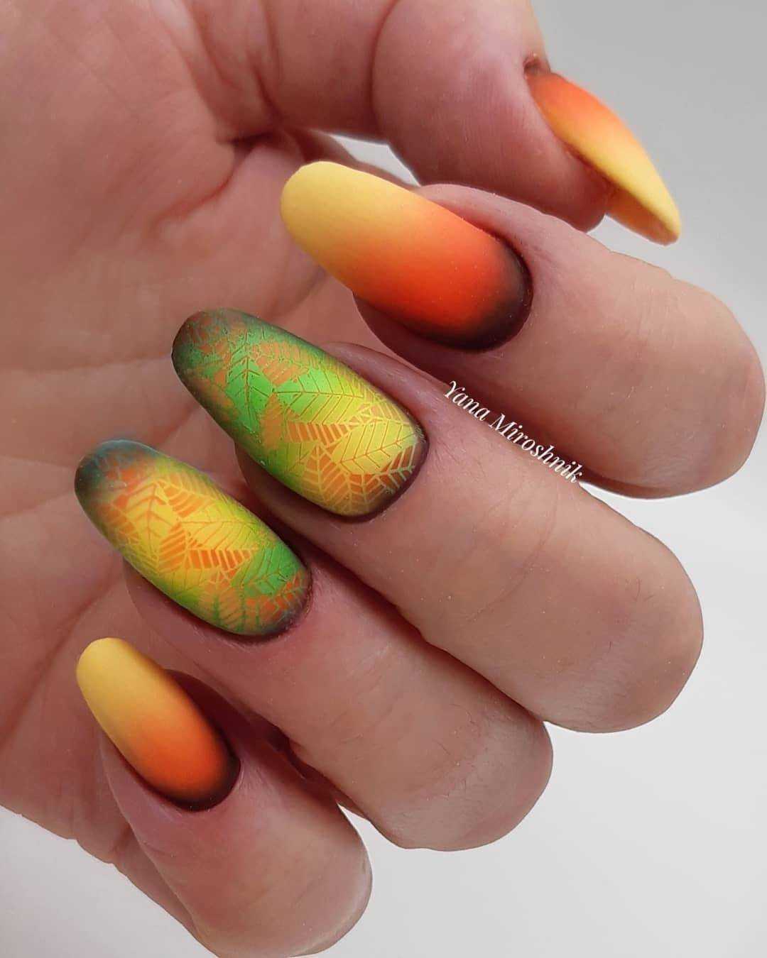 В предстоящих сезонах разноцветные гель-лаки стилисты советуют использовать в маникюре на квадрантной ногтевой пластине. Такая форма позволяет экспериментировать с цветами без удешевления образа. На квадрате яркие и кислотные оттенки выглядят стильно и современно.