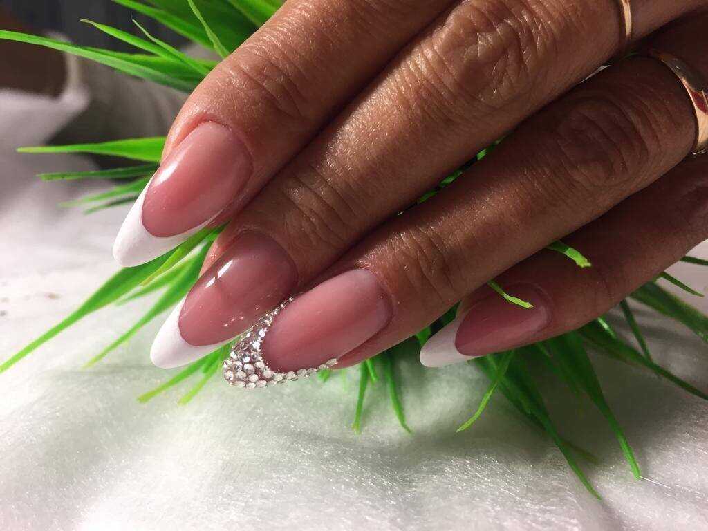 - треугольный френч — вариант маникюра, при котором линия френча образует угол параллельно острию ногтя;