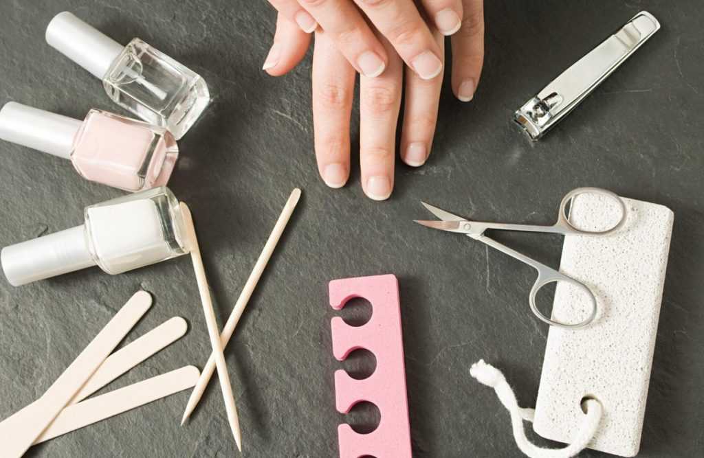 Первым делом подготавливают инструменты и материала для маникюра. Понадобятся средства для удаления или отодвигания кутикулы, пилочки и прочие стандартные принадлежности.