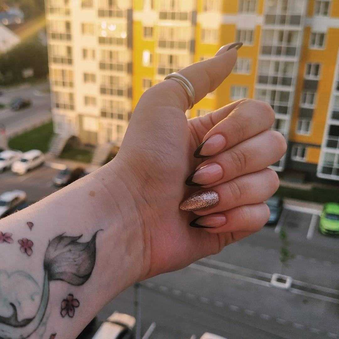 Оформление свободного края по канонам нейл-индустрии создается в зависимости от имеющейся формы. В овале – это полумесяц, в квадрате – ровное обрамление, а миндаль и стилеты – угловатый окрас.