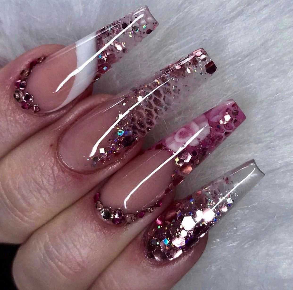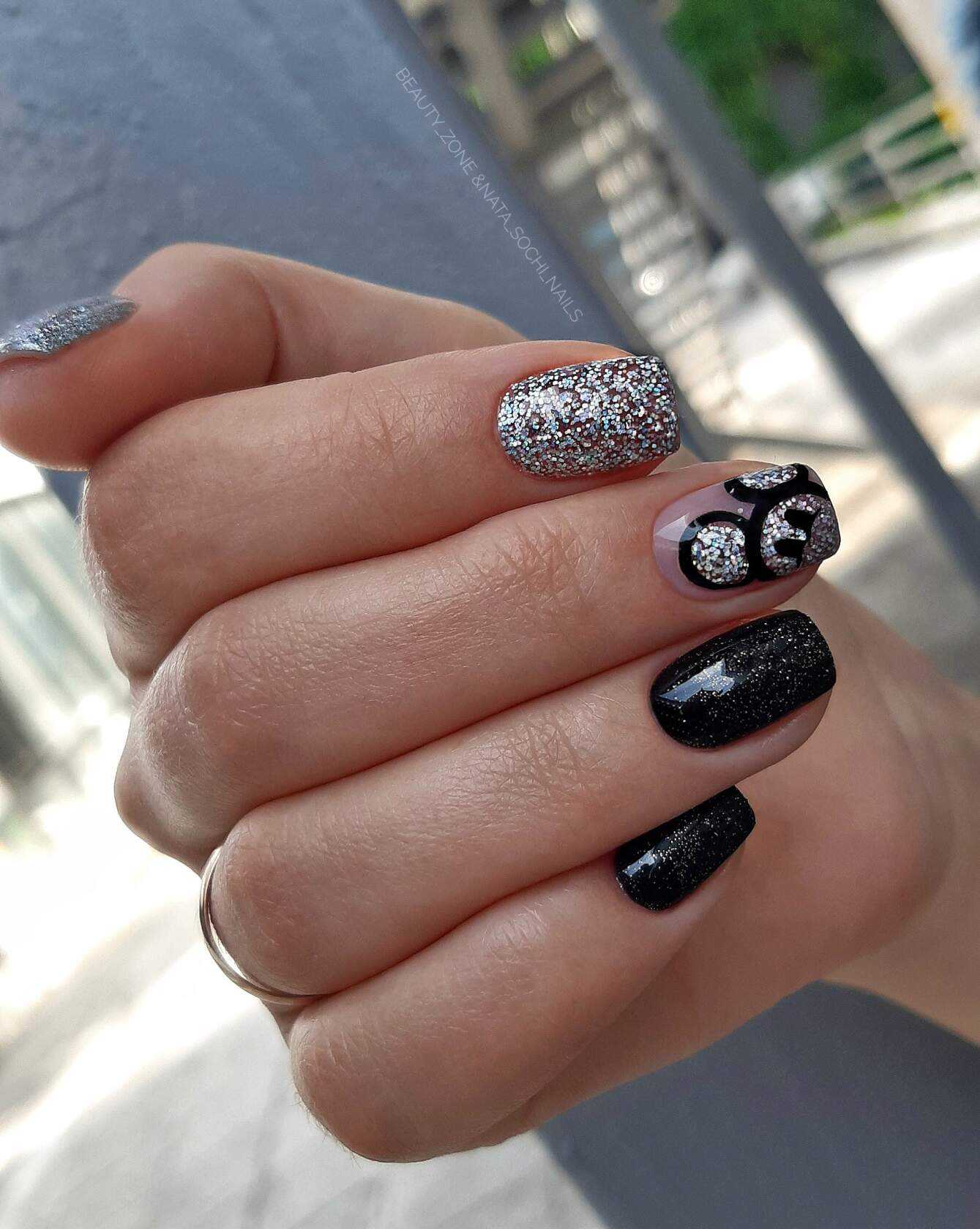 Сверкающий декор – всегда беспроигрышный вариант выбора под вечерний наряд. Ими можно украшать любую длину пластин. Глиттер можно смешивать с разными оттенками.