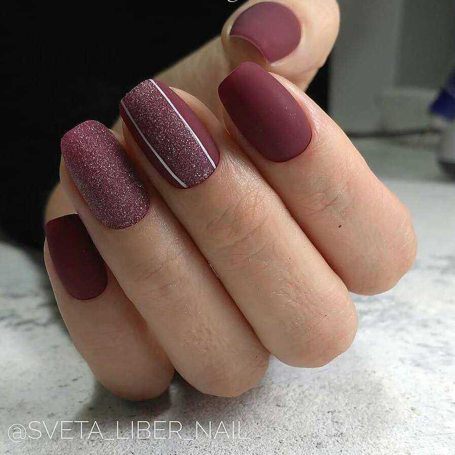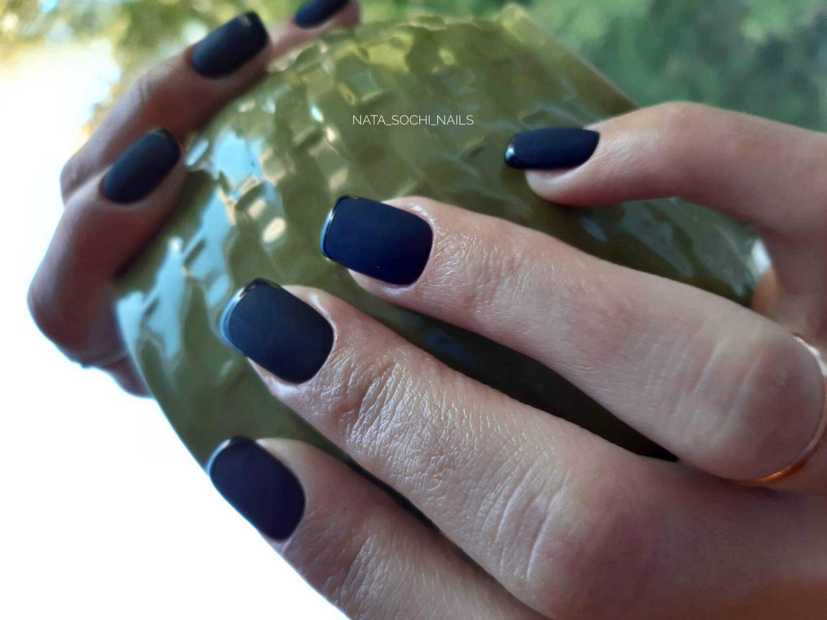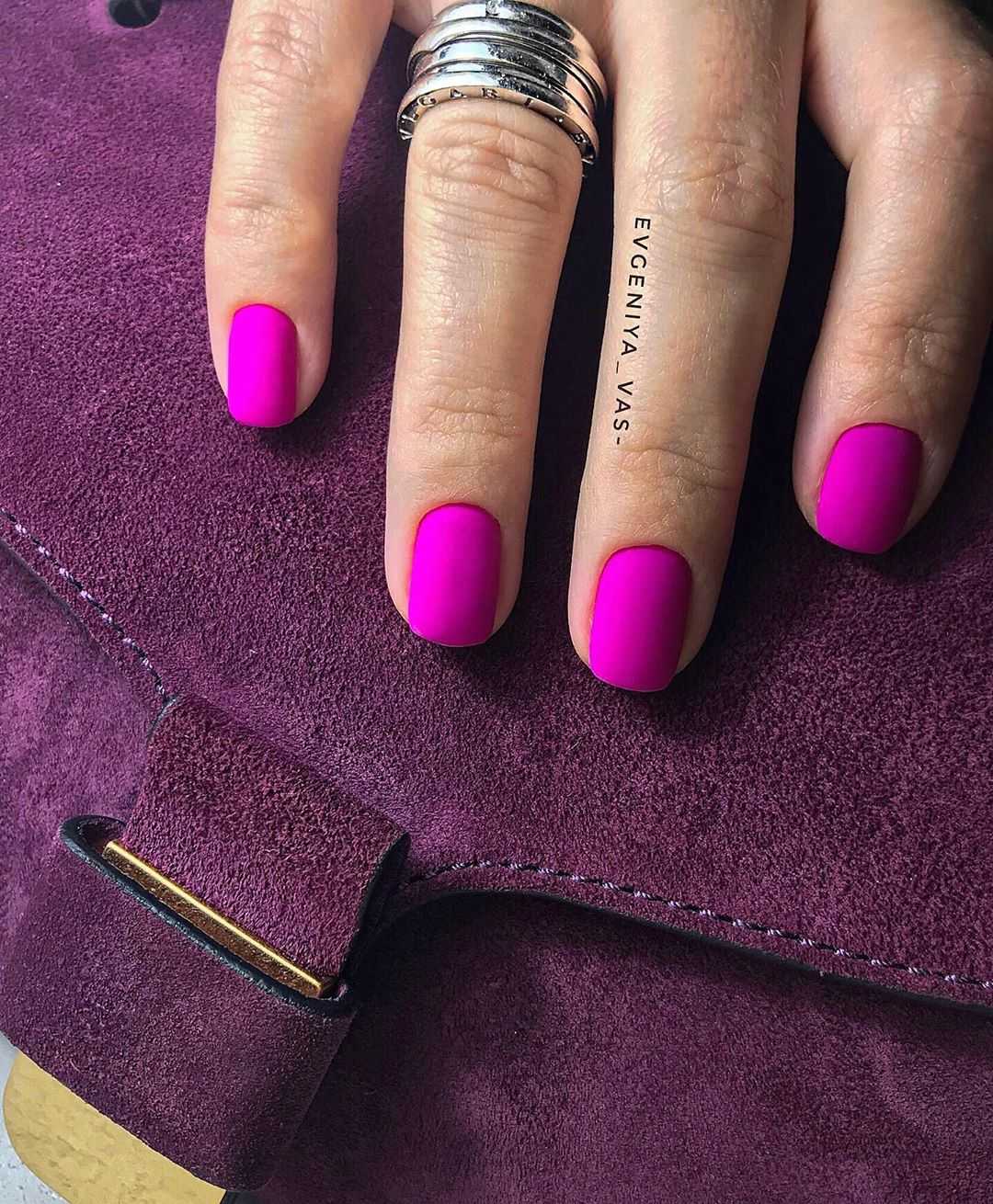 Ногти одного тона этой осенью тоже будут носить под матовым топом. Посмотрите на примерах фото, как выглядит цветной лак в сочетании с матовым покрытием. Цвет ногтей уже не бросается в глаза и вписывается в офисную атмосферу.