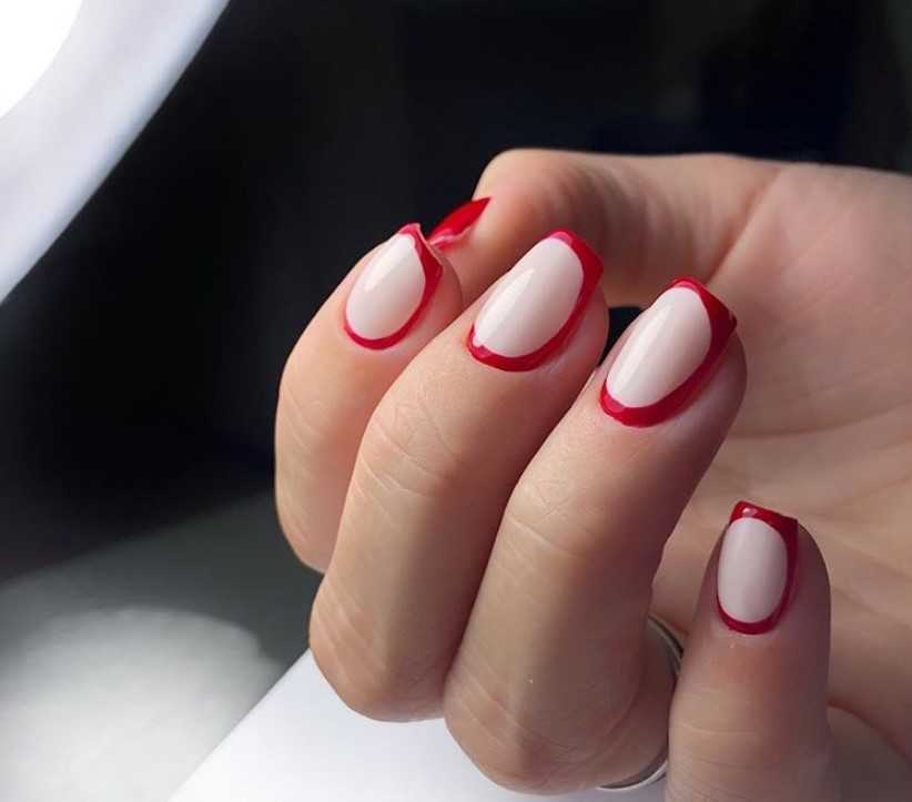 Ещё одна модная разновидность френча – нежная, пастельная база и более яркая линия улыбки. Такой маникюр часто выбирают для летнего сезона.