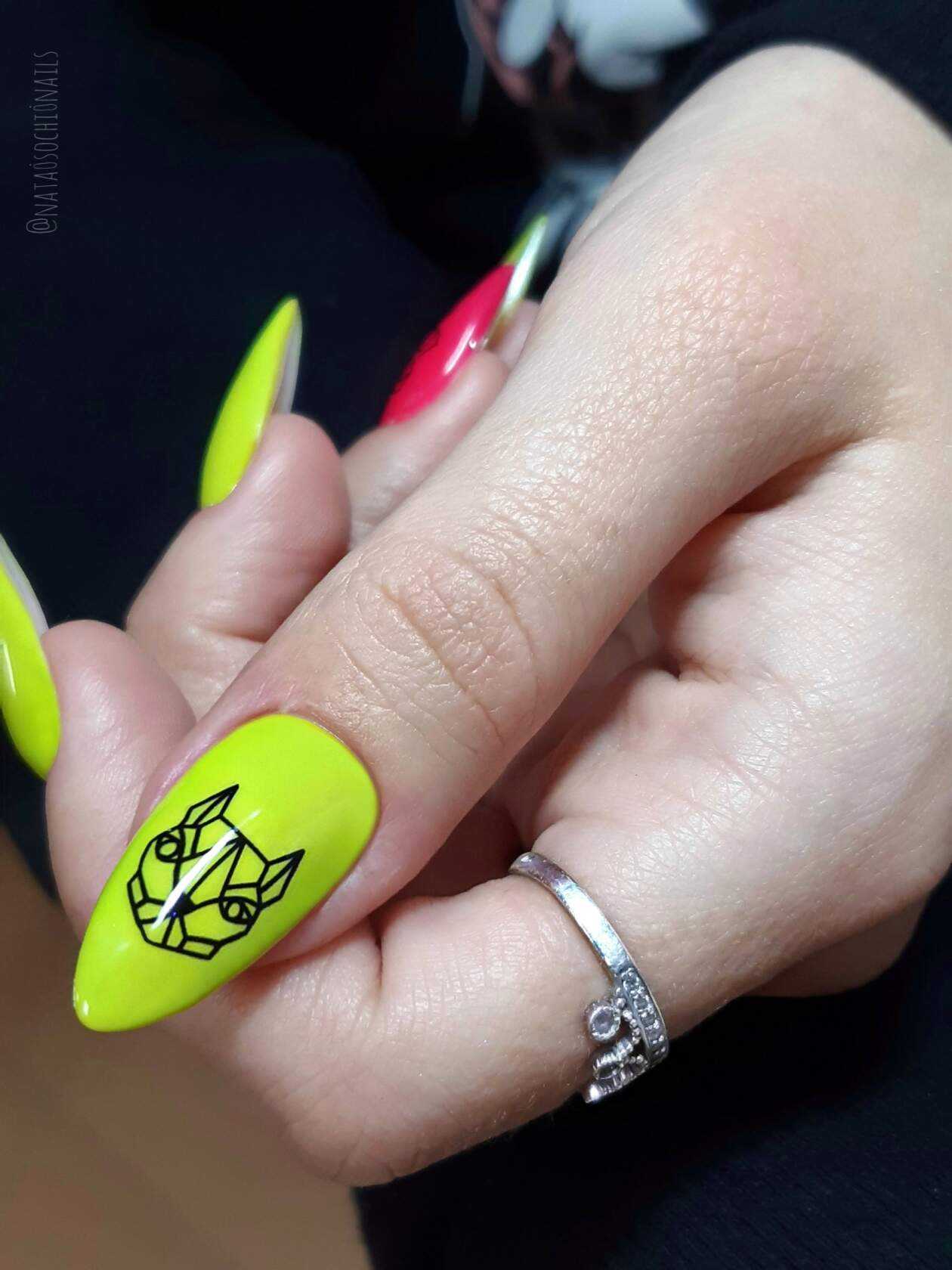 - выполнить на ногтевых пластинах геометрический рисунок,