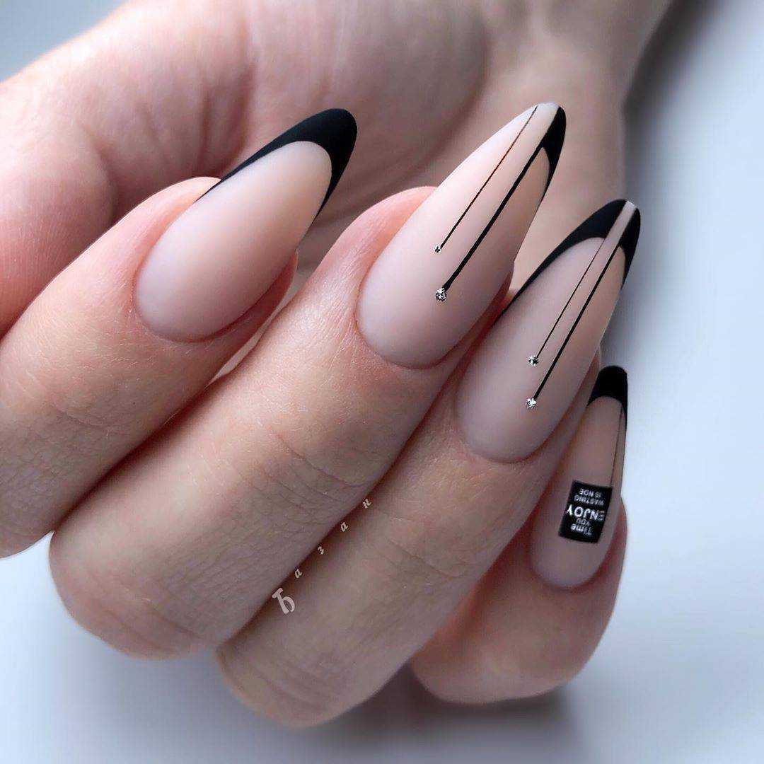 #1 Черный маникюр на длинные ногти с дизайном 2020