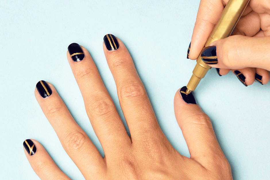Также для коротких ногтей подойдет мраморный орнамент или сочетание каких-либо контрастных оттенков. Укороченные ногти можно украсить геометрическими линиями или узорами. Для оформления можно использовать трафареты, наклейки, специальный скотч для маникюра.