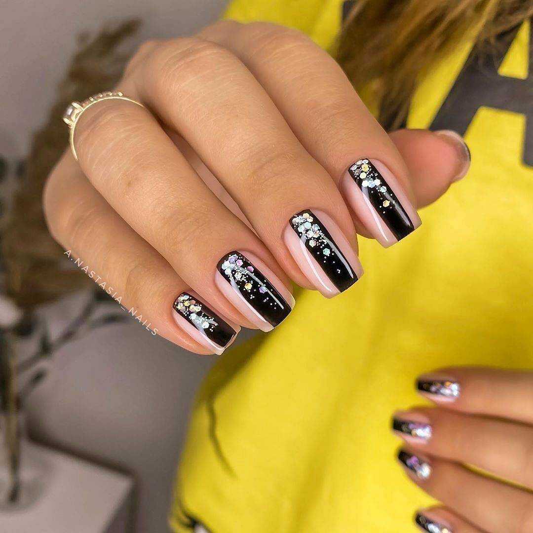 - Для любителей черного оттенка, который считается неподходящим под короткие круглые ногти, советуют такое решение.