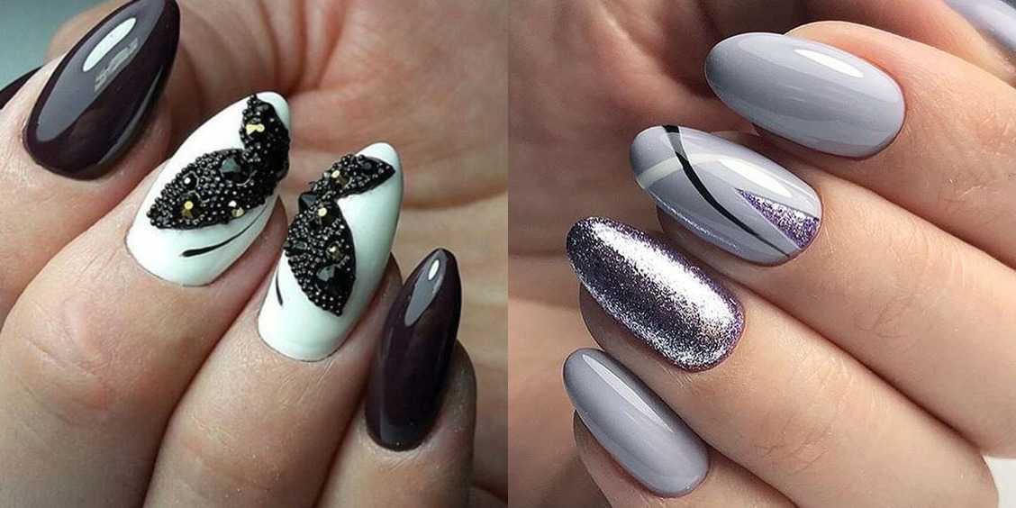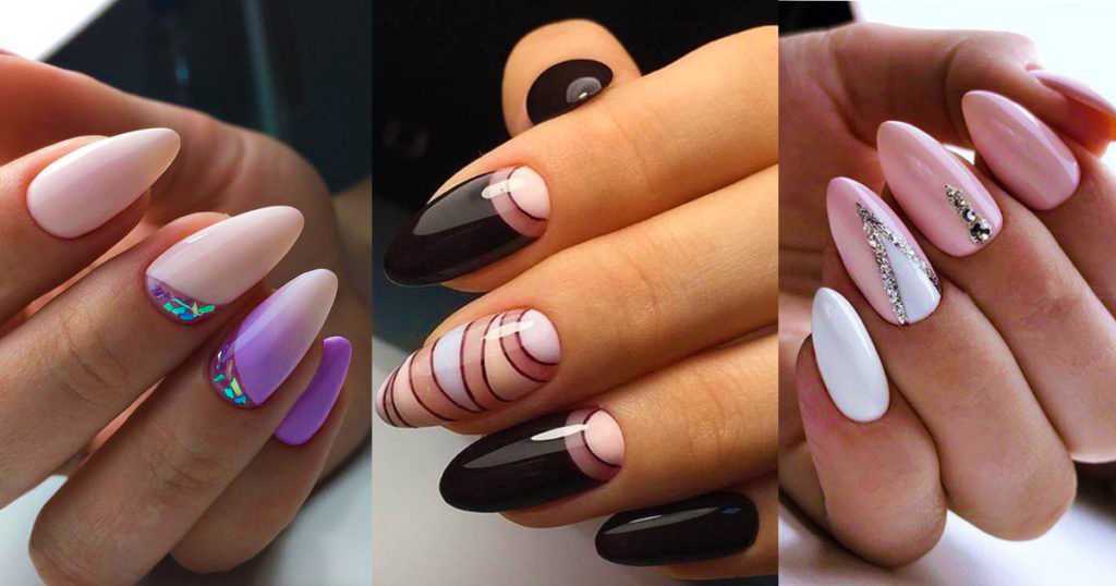 В отношении геометрических форм и дизайна овального цвета ногтей, то здесь как говорится самое широкое поле для реализации любых возможностей с нестандартными или проверенными идеями, как для классического исполнения маникюра с геометрическими составляющими, так и с неординарными, экстравагантными в овальном исполнении.