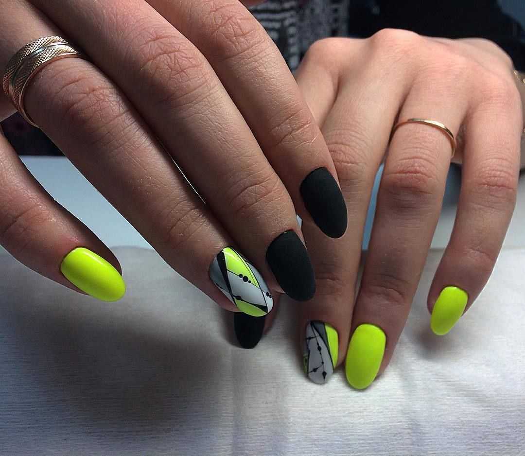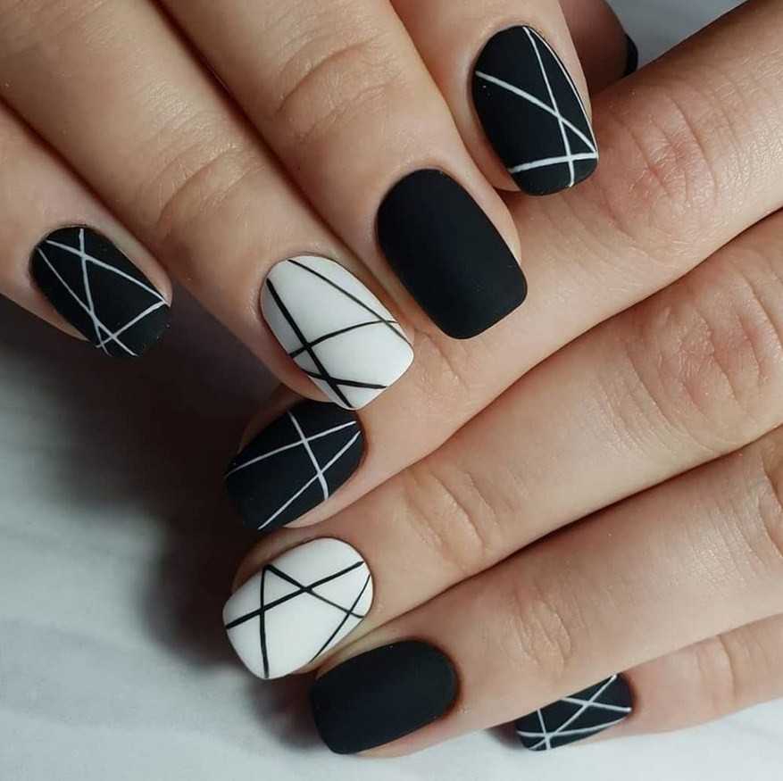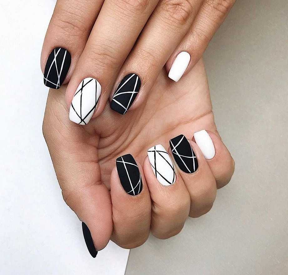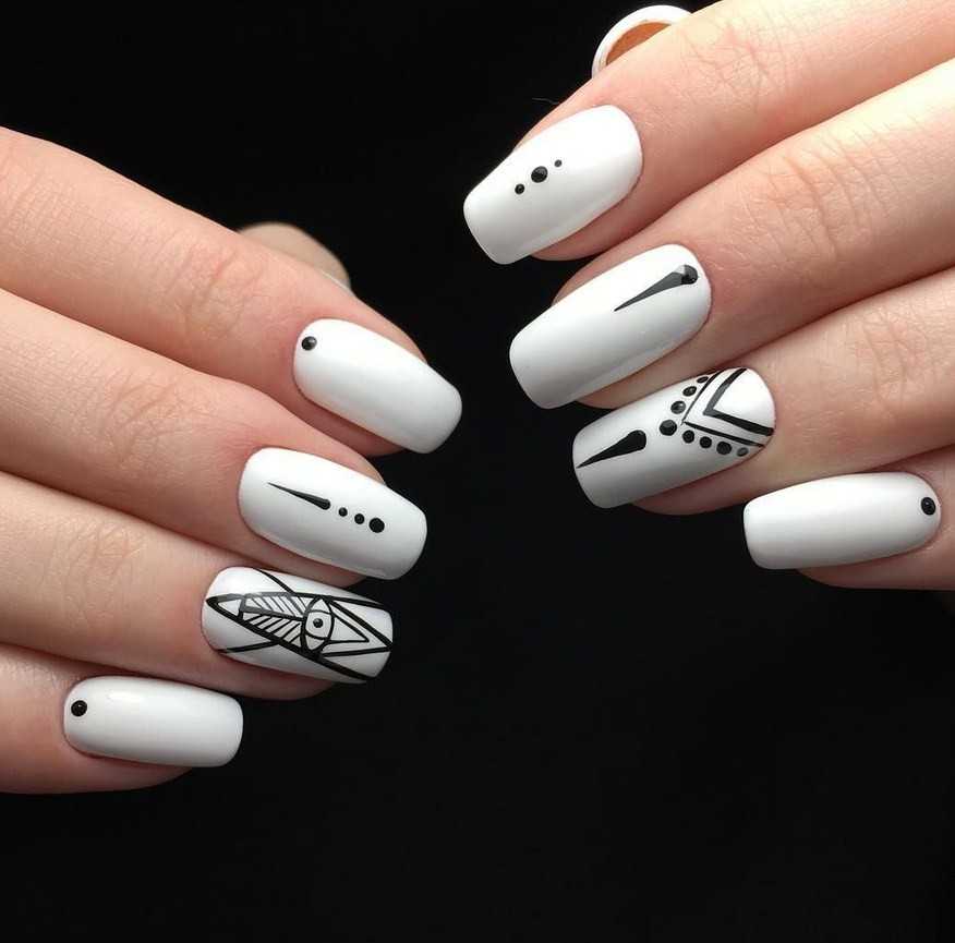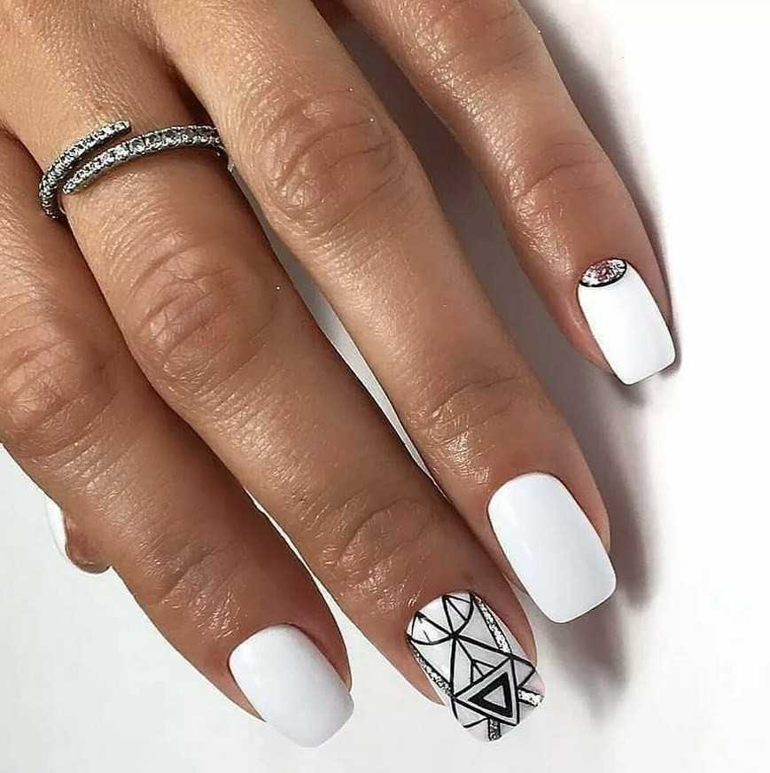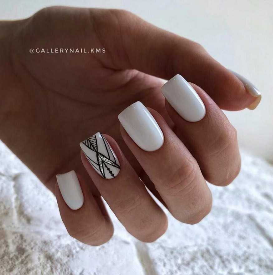 Важно соблюсти гармонию. Например, два белых ногтя с чёрной геометрией или наоборот