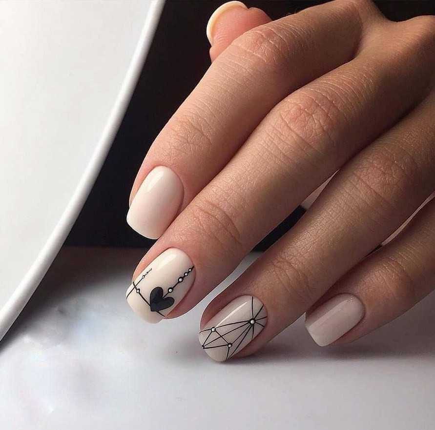 Очень стильные и простые рисунки на ногтях на бежевой основе
