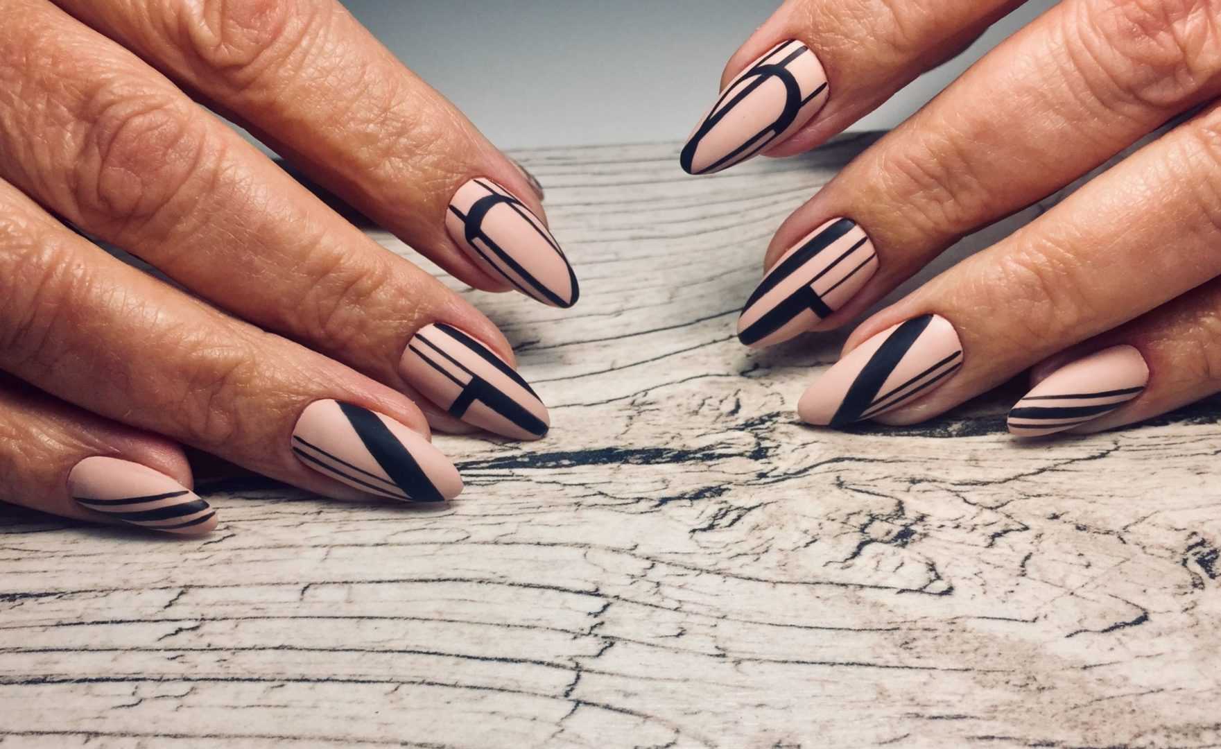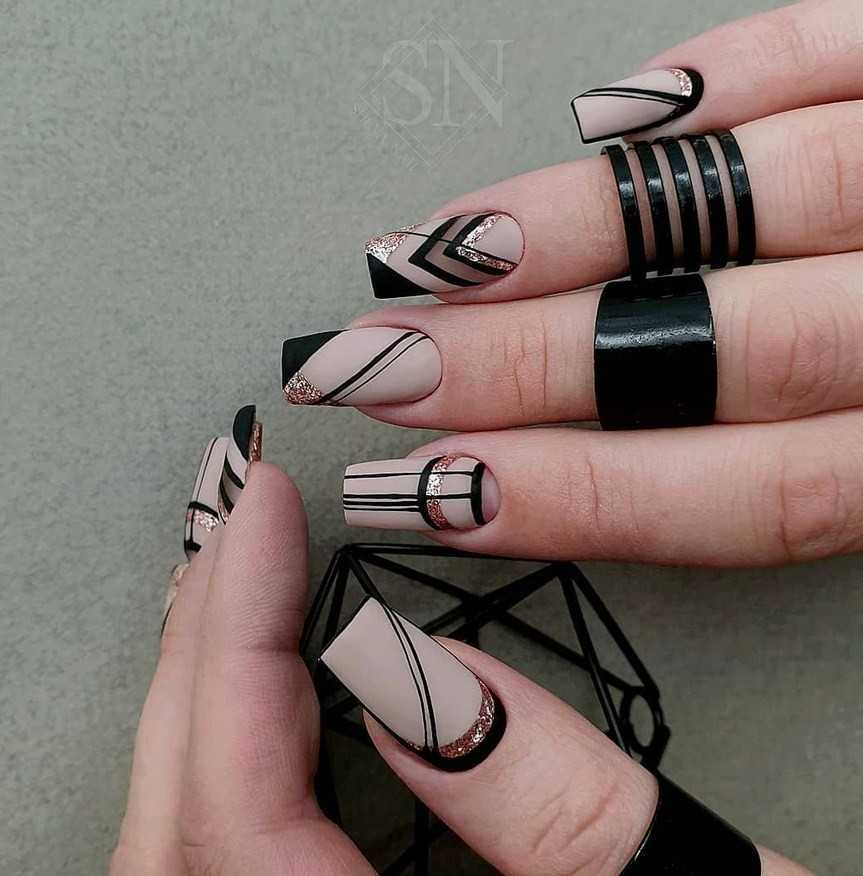 Самый безукоризненный цвет для маникюра в этом году. Бежевый в сочетании с чёрным глубок и выразителен. Но и здесь в приоритете минимализм и тонкие линии.