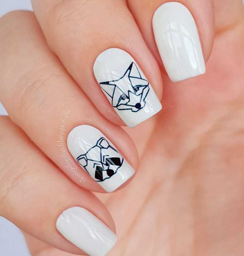 Яркие оттенки в данном случае тоже приветствуются. Только представьте, насколько красиво будет выглядеть рисунок животного в геометрическом стиле на розовом, оранжевом, желтом, зеленом или голубом фоне. Дополнительно его можно украсить небольшим количеством страз или блесток.
