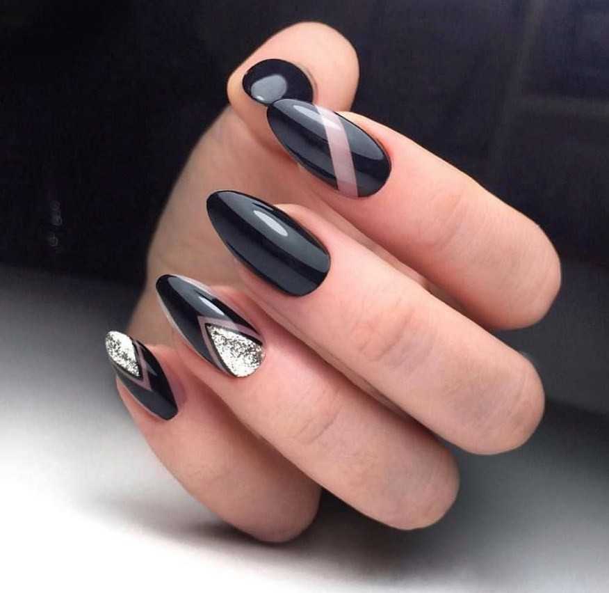 Ведь крайне важно, чтобы рисунок был хорошо заметен. Поэтому любители темного маникюра чаще всего делают комбинированное покрытие. То есть основным может быть черный цвет, а на нескольких ноготках белый цвет послужит фоном для рисунка