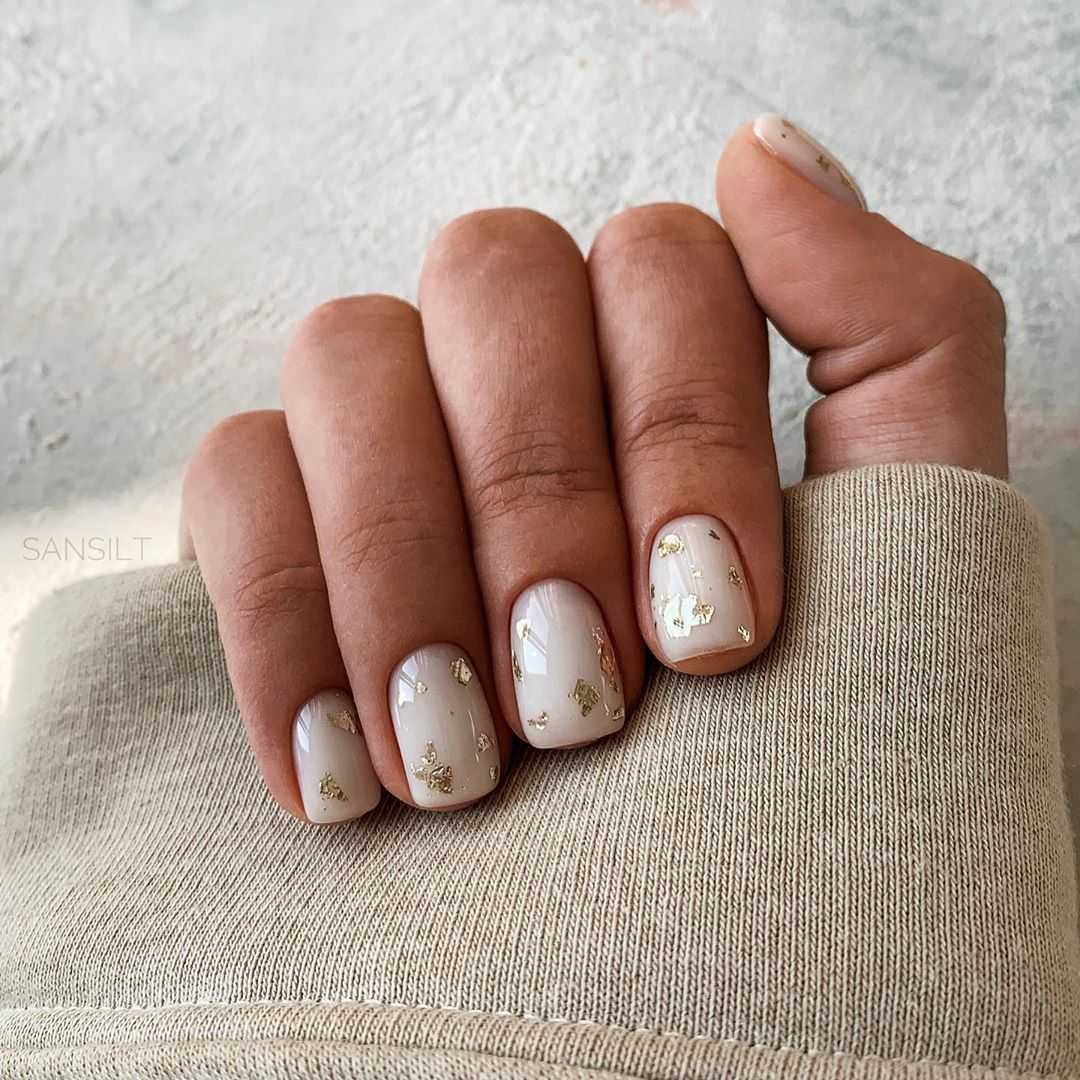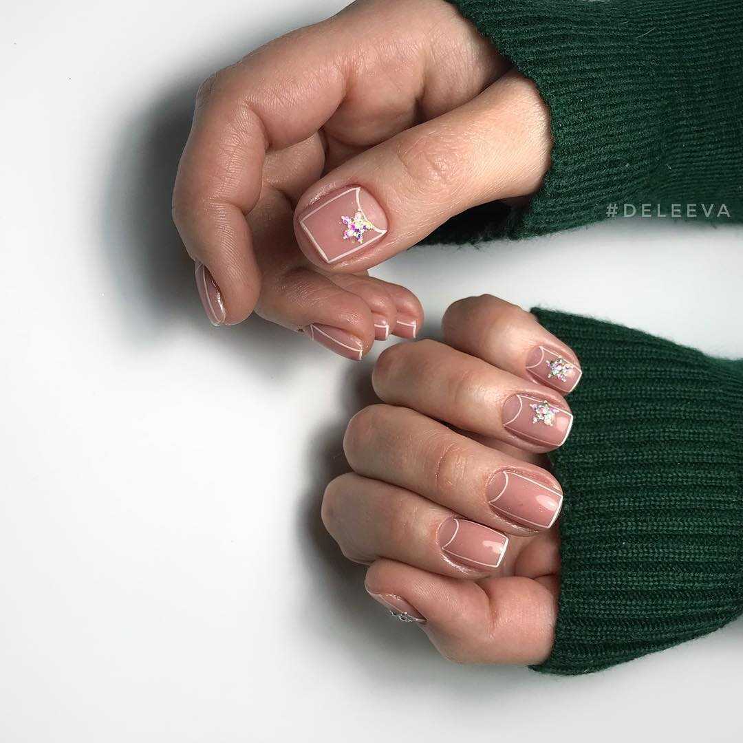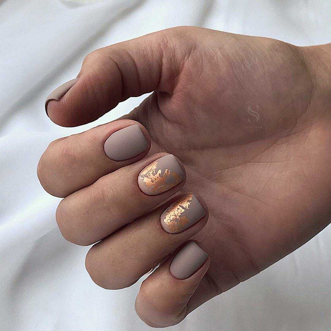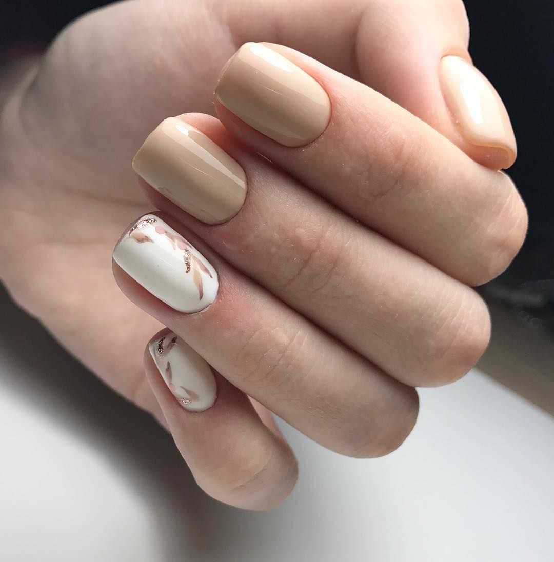 Холодное время года популярно спокойными тонами и минимальным декорированием. Теплый оттенок с утонченным рисунком идеально впишется в прохладную осень или бурю из снегопада, грея воспоминания о лете. Осенью и зимой также популярны золотые и серебряные тона. Выбирая данный декор, не наносите на все ногти предлагаемый оттенок. Достаточно украсить 1-2 ноготка среди нежного, нюдового оттенка.