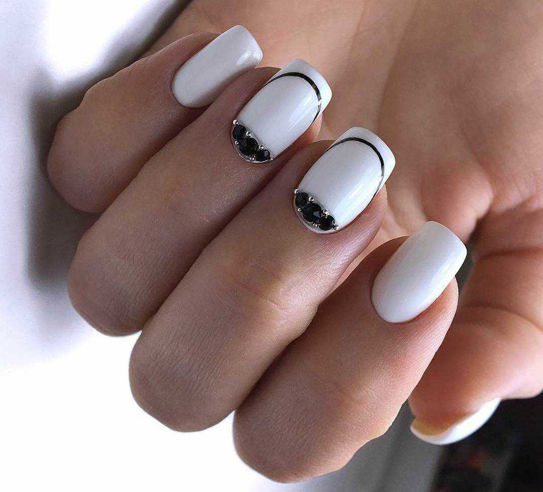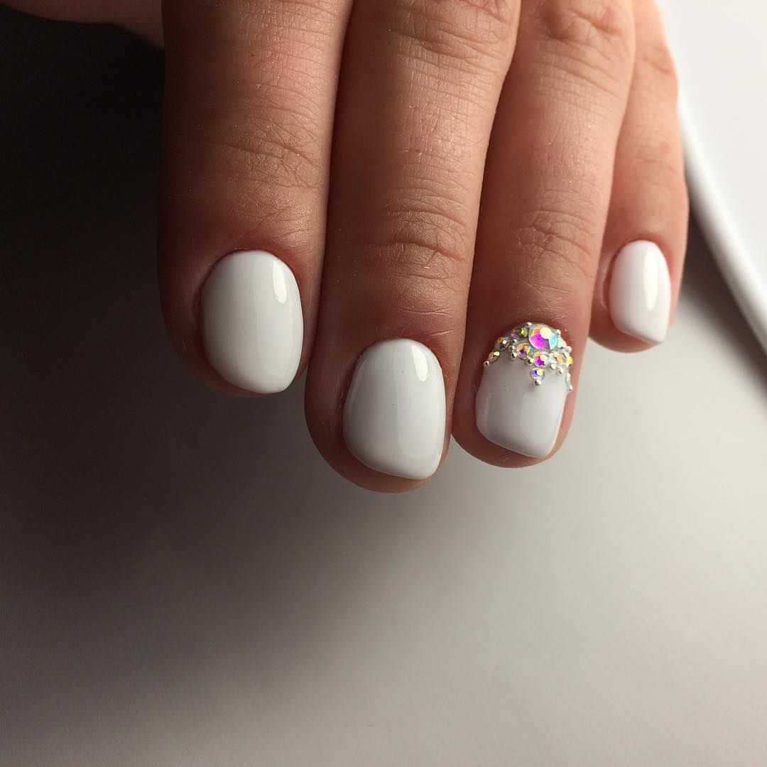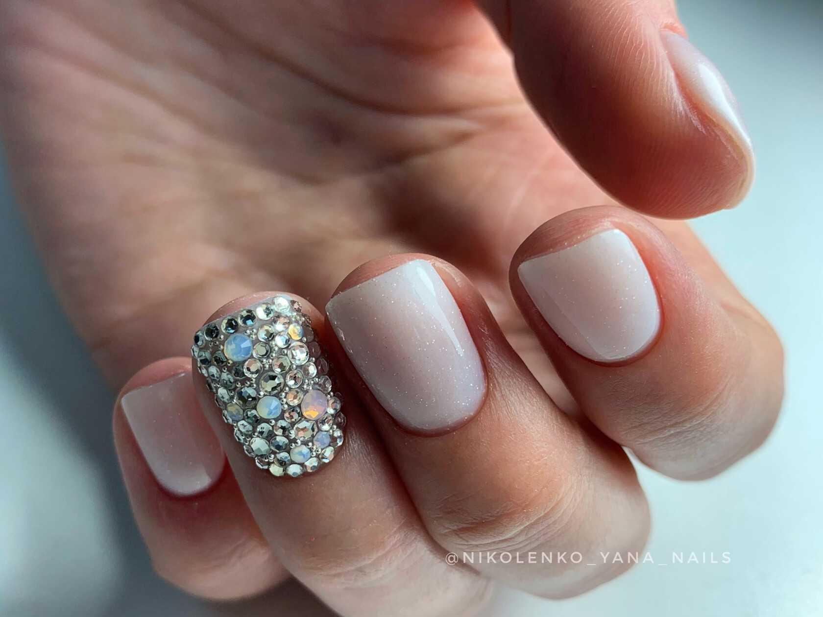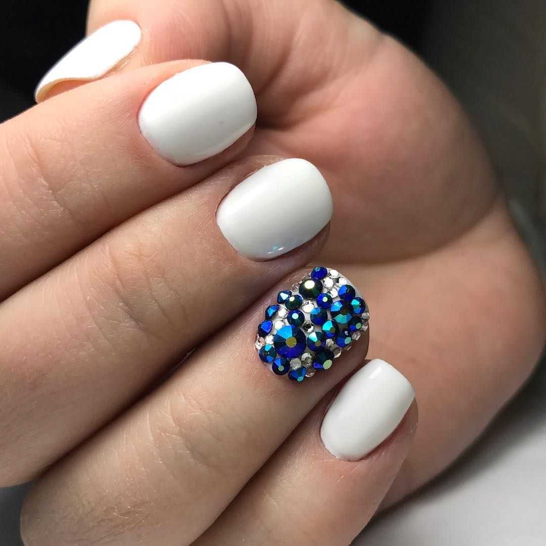 В летнем маникюре стразы смотрятся по-особенному изящно привлекательно. Для коротких ноготков можно применять не только выкладку камешков у кутикулы ногтевой пластины. Тренды лета 2020 предлагают выполнение узора на ноготках. Например, для морского отдыха актуальным станет рисунок из стразов в виде морской звезды, черепахи и других морских мотивов. Для летнего дизайна прекрасным решением станет украшение одного ноготка цветными или серебристыми камешками. Можете смело использовать декор не только привычной круглой формы, но и ромбовидной, звездообразной, конусной и других. Среди популярного и распространенного нейл-арта на коротких ноготках со стразами можно выделить дизайн с мерцающей короной.