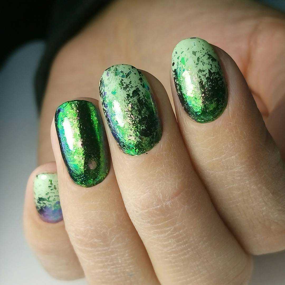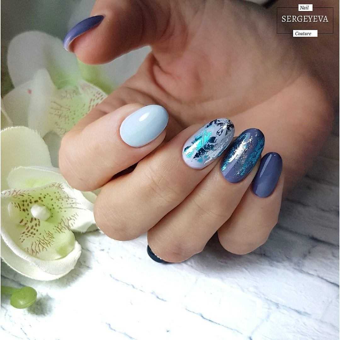 - Фольга. Подходит для девушек, которые хотят попробовать новый оригинальный элемент дизайна. Фольга выпускается в нескольких вариантах: жидкая, переводная, кружевная, матовая, в виде ленты и трафаретов. Идеально подходит для использования в любом сезоне, независимо от того праздничный маникюр или повседневный.