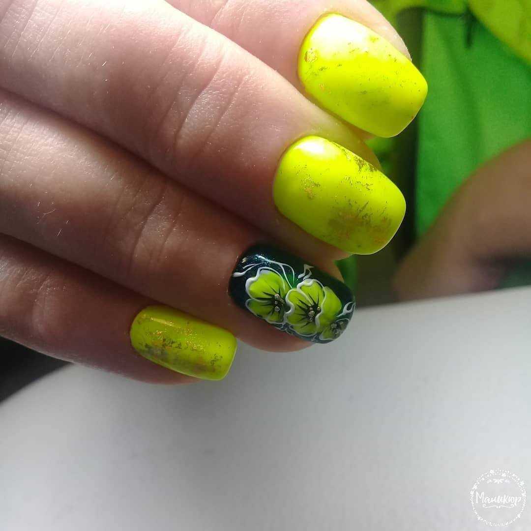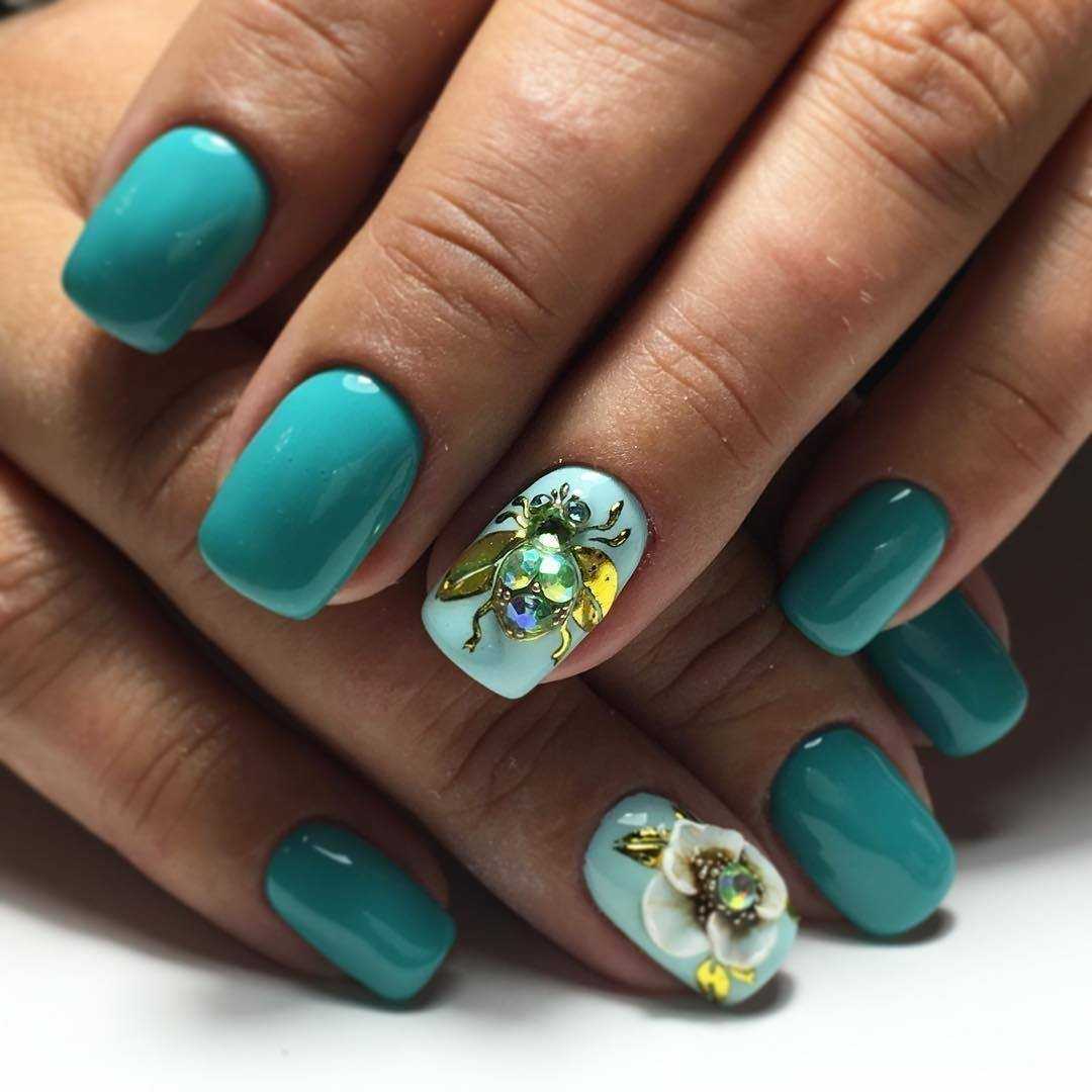 В летний период в тренде сочные, яркие, неоновые тона. Модным исполнением на однотонном покрытии будет дизайн с различным декором.