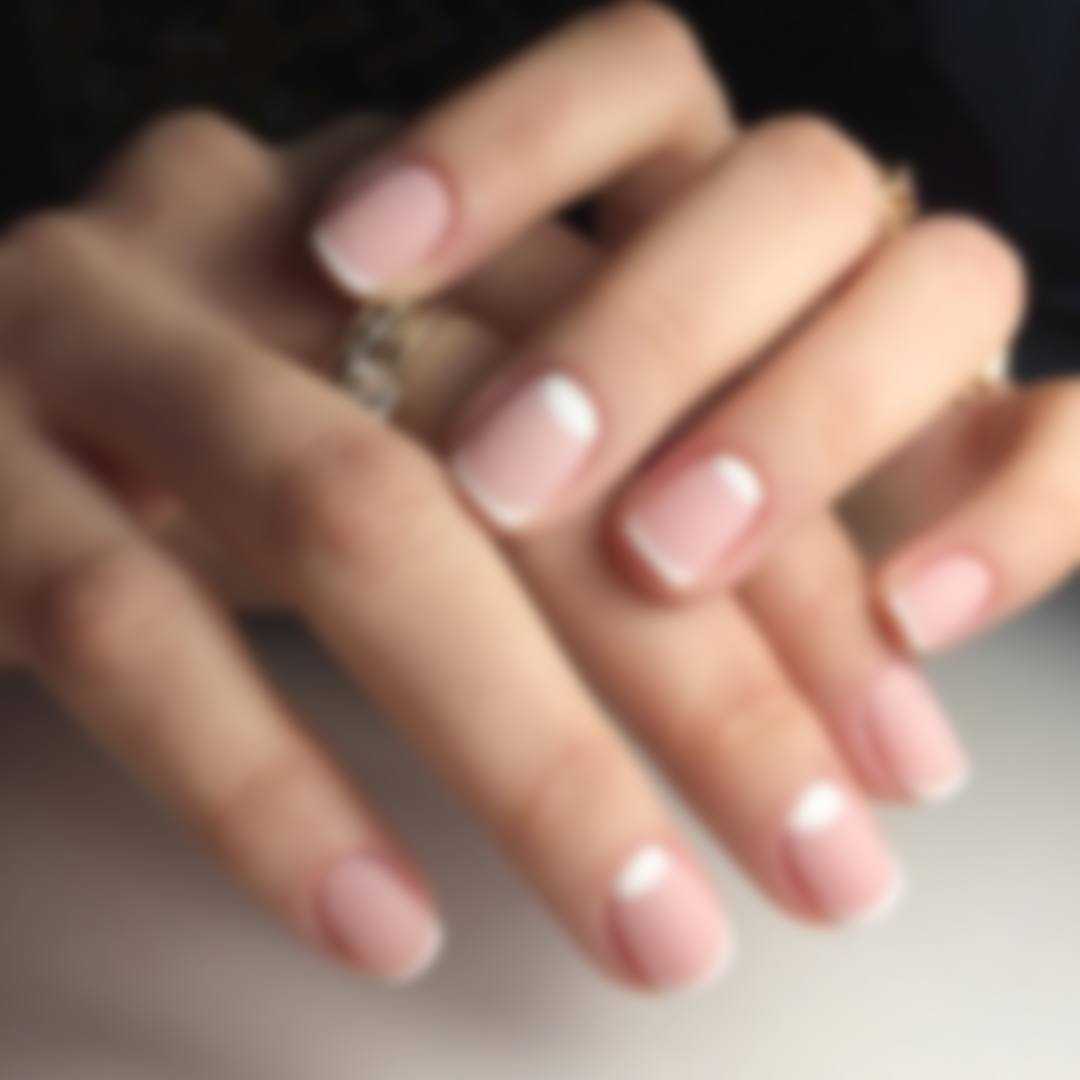 - Градиентный переход в аккуратную и нежную линию улыбки френча на краю ноготка.