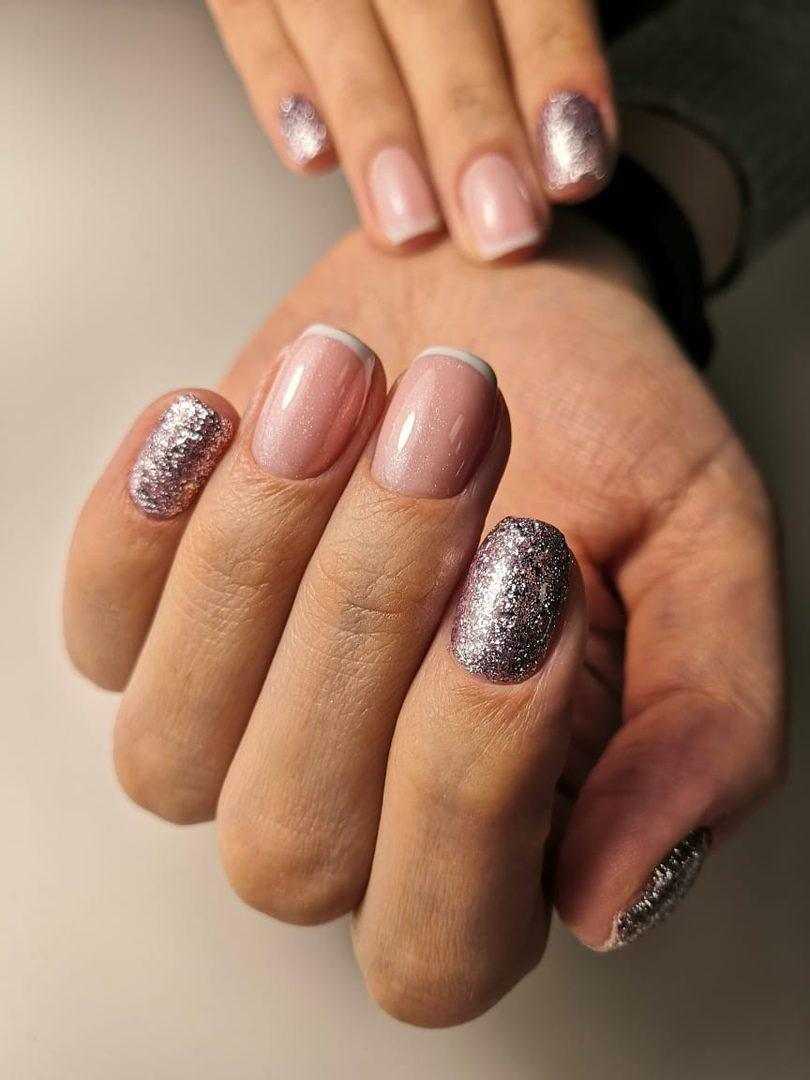 - Блестки. Являются одними из любимых покрытий девушек. Блестки можно размещать по всей поверхности ногтя или только на определенной части, а также украшать узоры.