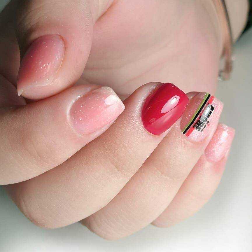 - Любительницам декора и яркого маникюра советуем использовать наклейки, геометрические узоры и смешивание тонов. Очень популярен на данное время градиент. Сочетание цветов выбирайте абсолютно любое: нежная нюдовая гамма в комбинации с пестрой и красочной коллаборацией. Желающим украсить градиент стразами мы посоветуем не переборщить. Достаточно декорировать блестками лишь 1 ноготь, чтобы придать своей персоне женственность и легкость.
