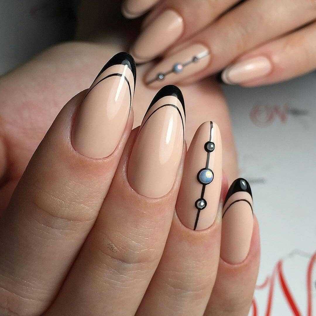 Безупречная геометрия на ногтях идеально гармонирует с острой формой ногтей. Во-первых, их длина позволяет создавать самые разные рисунки. Во-вторых, линии в любых направлениях и треугольники удачно дополняют форму ногтевой пластины, добавляя оригинальности маникюру.