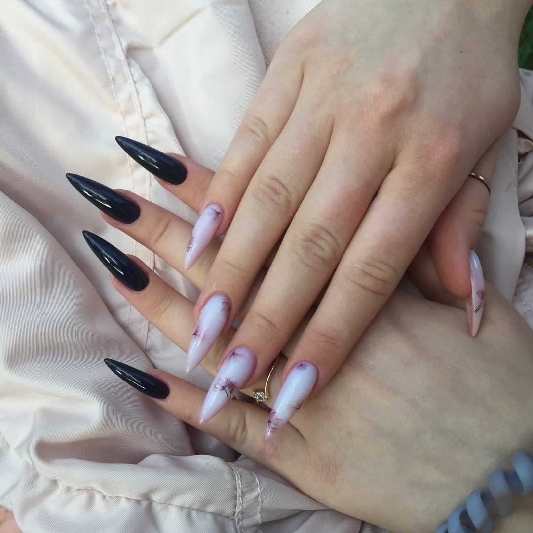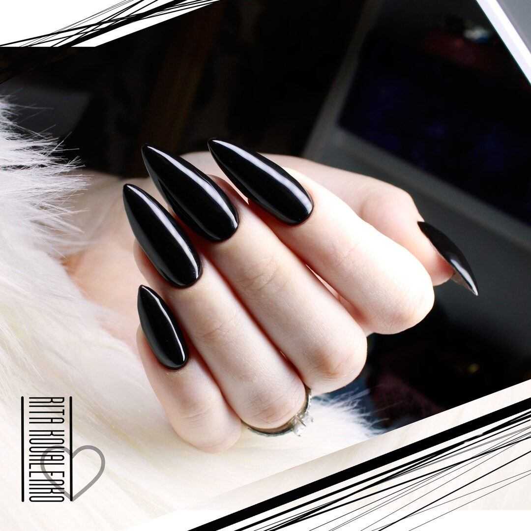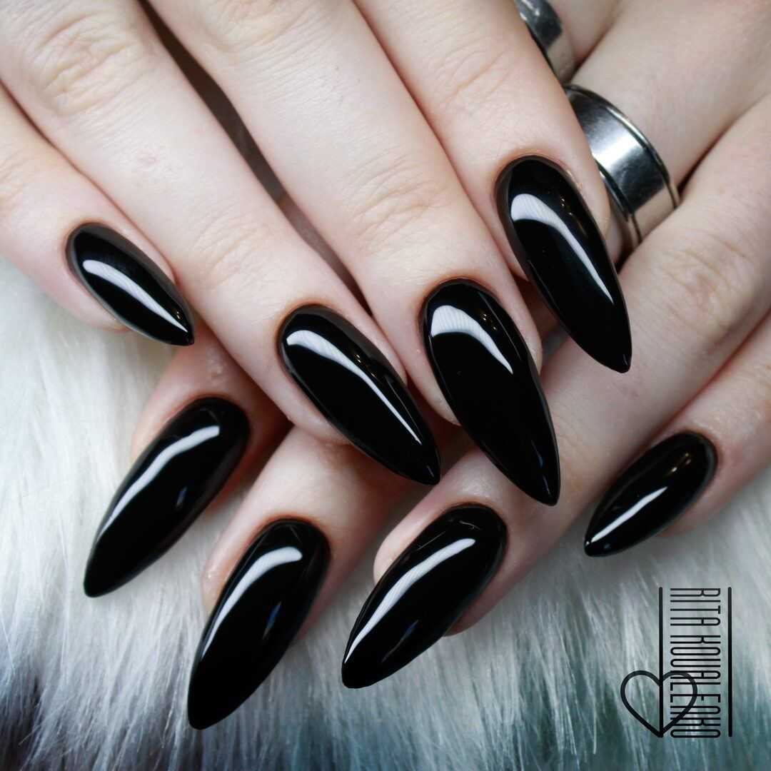 ТЕМНЫЙ МАНИКЮР НА ОСТРЫЕ НОГТИ