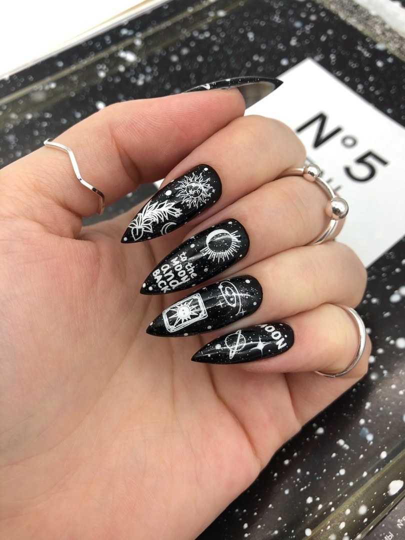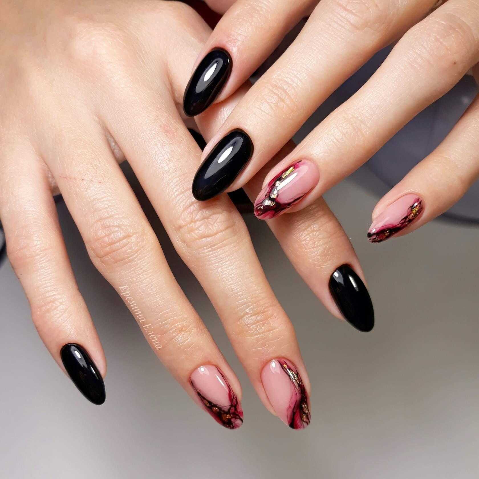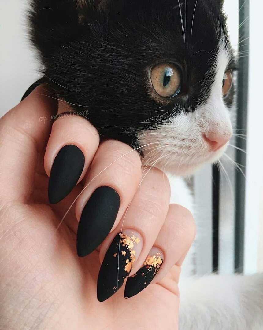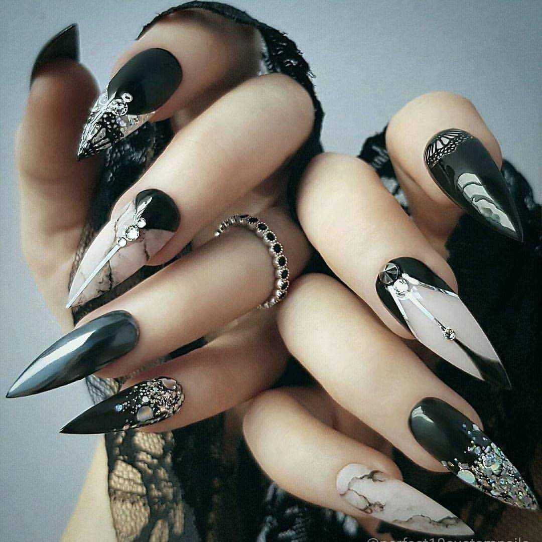 ТЕМНЫЙ МАНИКЮР НА ОСТРЫЕ НОГТИ