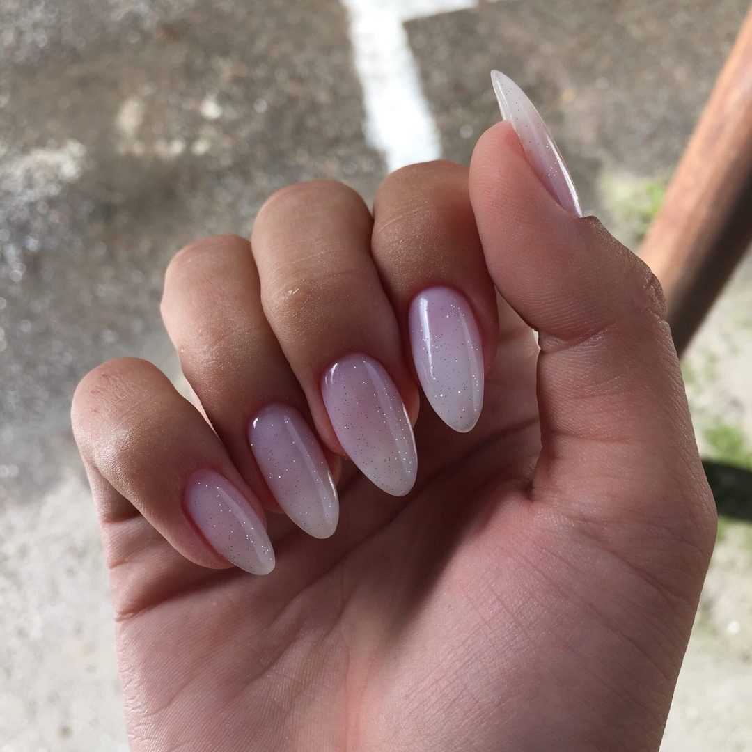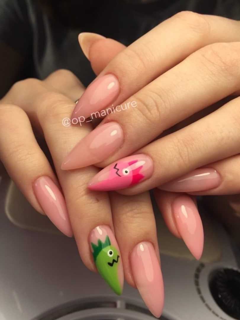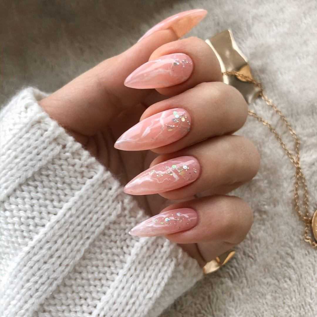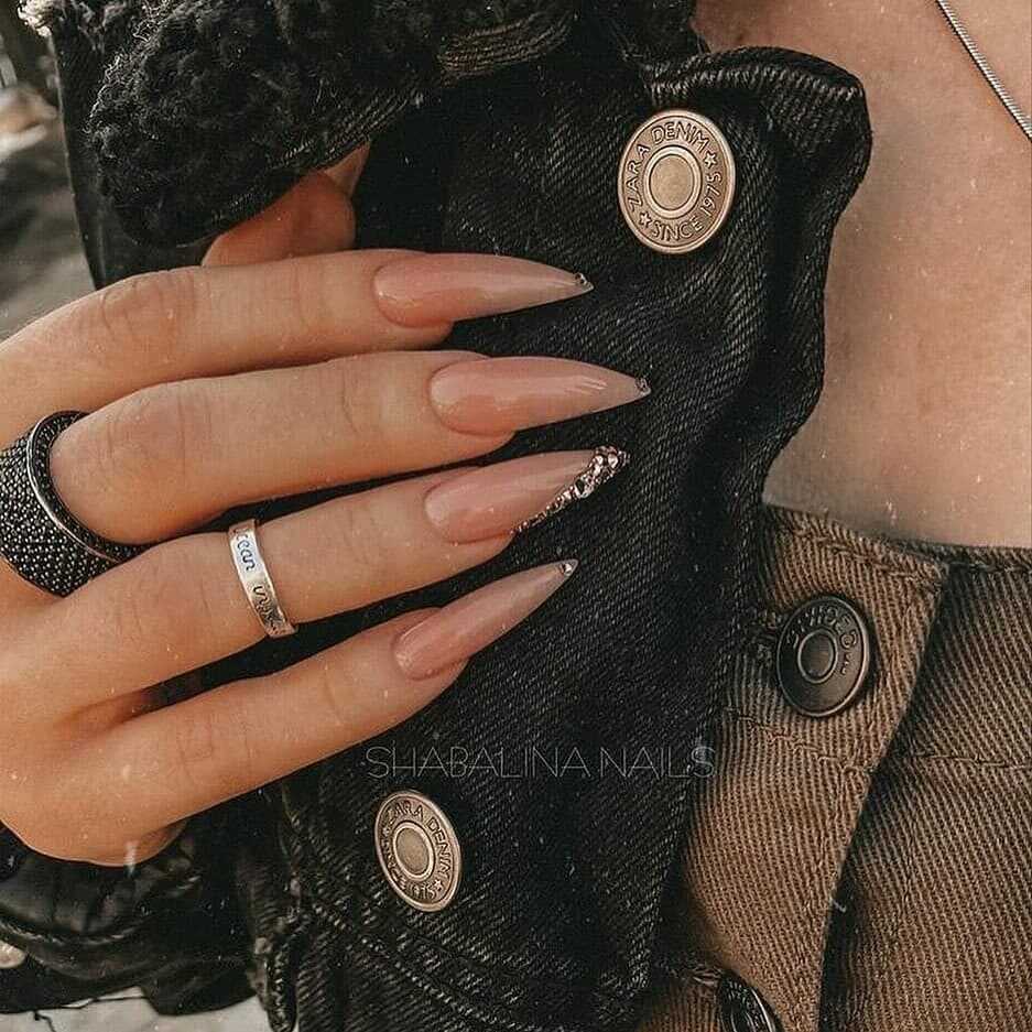 Повседневный маникюр на длинные острые ногти в стиле nud