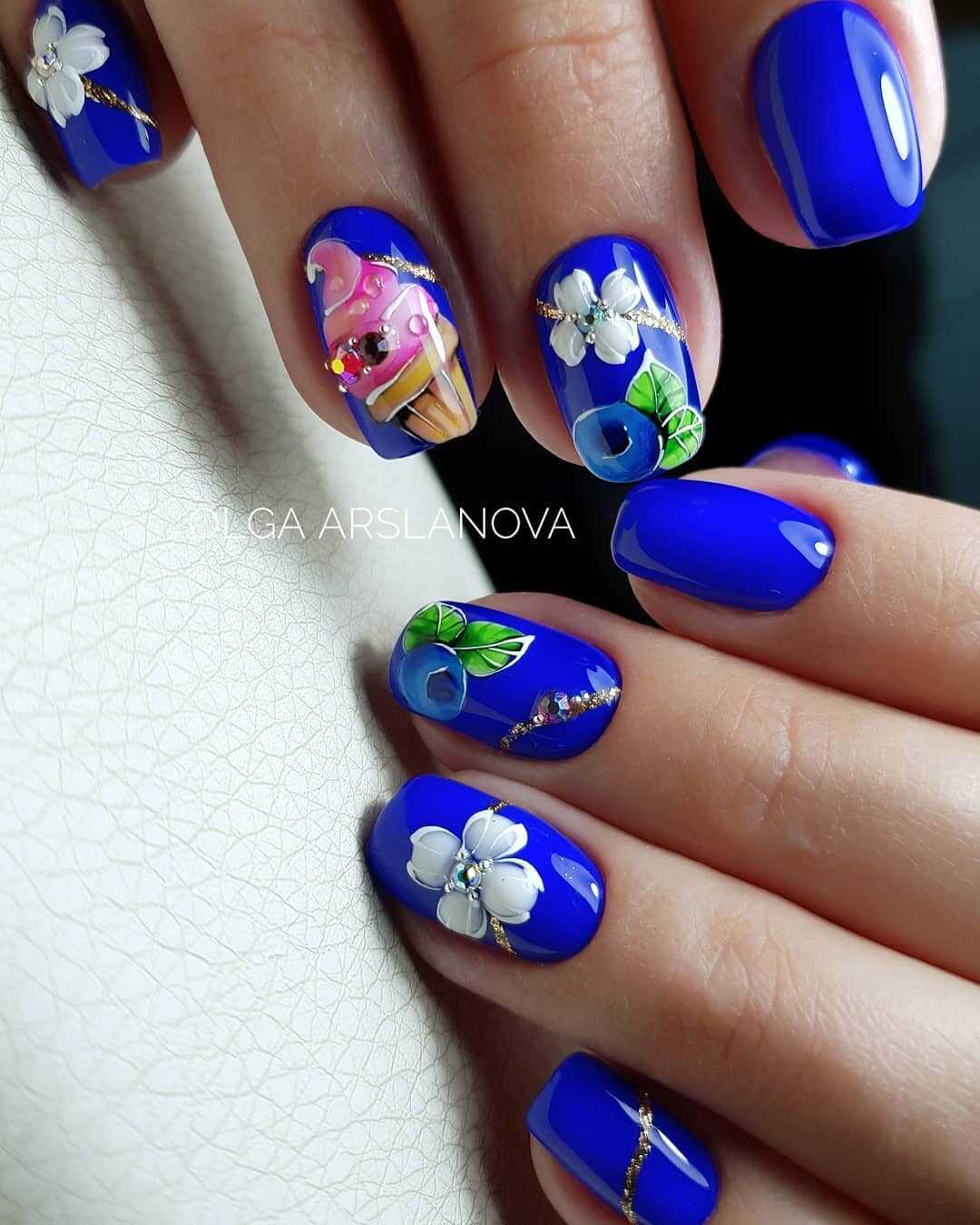 Безупречный маникюр на ваших руках — это не только идеальный дизайн, большую роль играет форма ногтей и ее длина. Этим летом в тренде квадратная форма ногтей. Квадрат хорошо смотрится и на коротких, и на длинных ногтях. Форма квадрата есть двух видов: квадрат и мягкий изящный квадрат. Первый вариант подойдет для более длинных ногтей, а второй — к средней длине ногтя. Разница между двумя видами всего лишь в том, что во втором варианте уголки ногтя немного закругленные. На квадратных ногтях также безупречно смотрятся стразы разной формы. Для коротких ноготков лучше выбирать мелкие стразы и не заполнять ими весь ноготь. Такое сочетание смотрится на ногтях красиво и естественно. Для длинных ногтей подойдут и большие стразы, камни, 3D украшения. И даже если стразами заполнить весь ноготь, на длинных ногтях это смотрится вполне уместно.