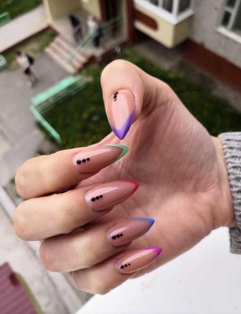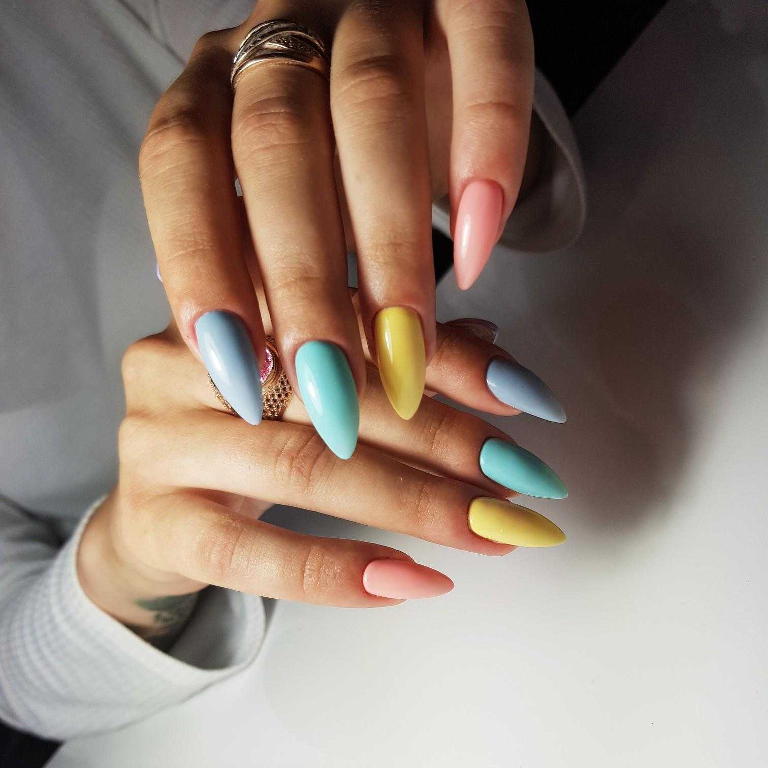Очень смелый, игривый и незаурядный маникюр получился в стиле разноцветного дизайна «разные ручки». Прокрасьте все пальчики каждый в ином цвете, подобрав, к примеру, приятные пастельные оттенки, что идеально сочетаются друг с другом и подарят вашим ноготочкам небывалое очарование с модным нейл-дизайном «разные ручки».
