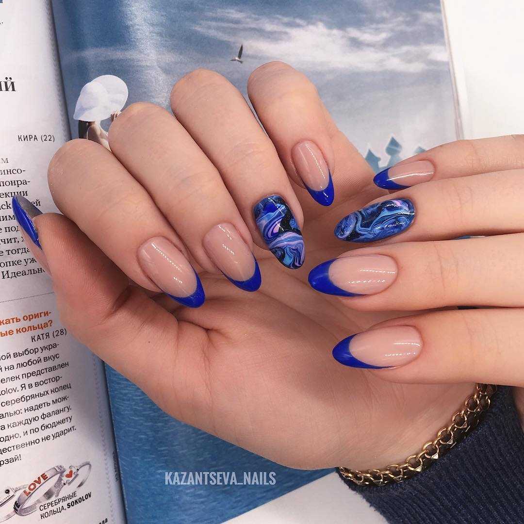 Квадраты, треугольники, различные трапеции с френчем – настоящая эстетика длинных ноготков. Касаемо цветов, все зависит от времени года. В зимнем маникюре необходимо использовать синий, глубокий зеленый и винный оттенок. Летом гармонично смотрятся теплые нюдовые тона, отражающие утонченность и изысканность.