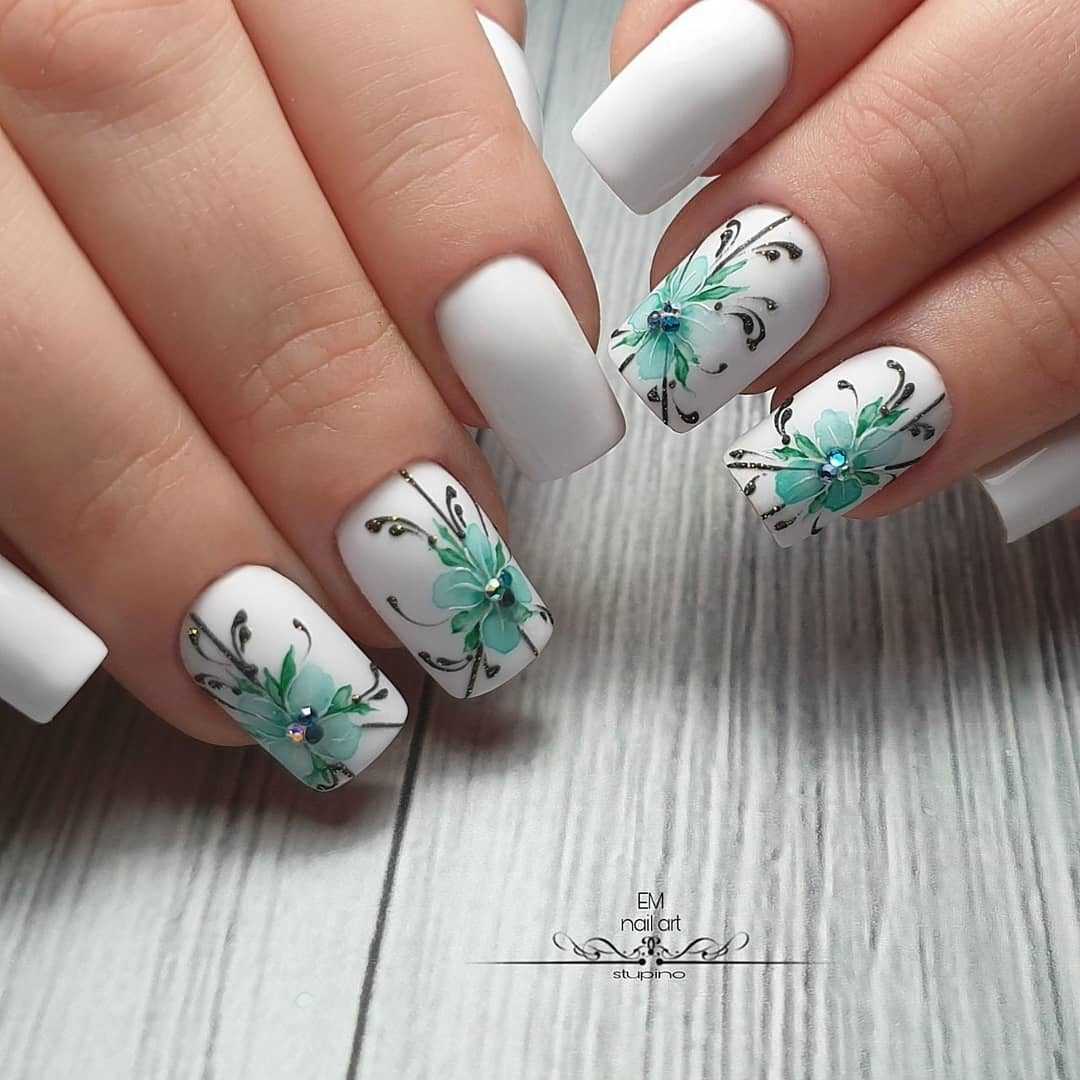 Хотите побаловать себя милыми цветочными узорами в очередном модном дизайне ногтей «разные руки», тогда исполните полдюжины ноготков с матовым темным изумрудом, а другие – с цветочными принтами. Поучится весьма стильный и трендовый маникюр «разные ручки» 2020-2021 для истинных леди.