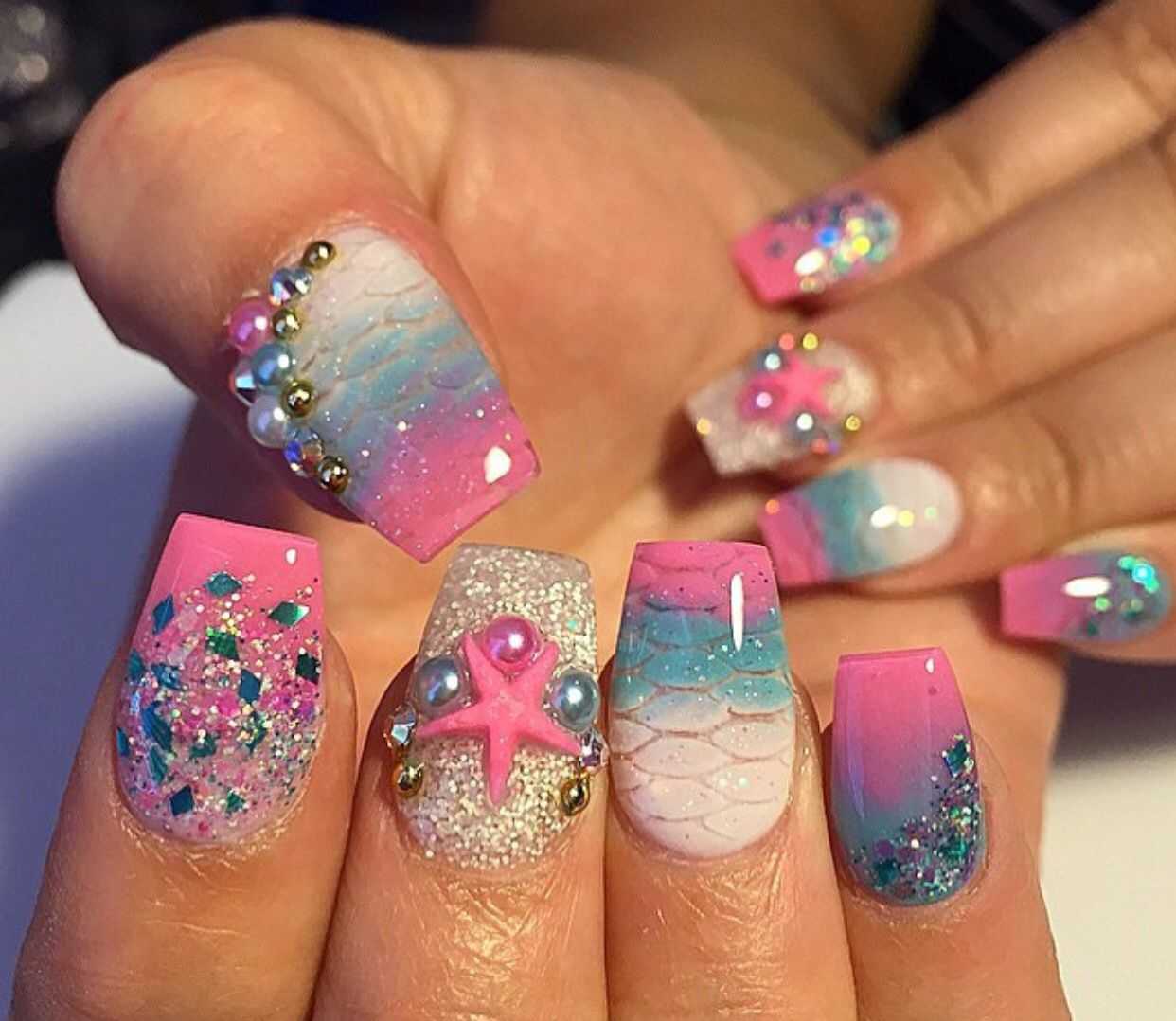 Практичные девушки безусловно оценят аквариумный нейл-арт. Рисунок, имитирующий погружение под водой выглядит завораживающе и красиво. Более того, он может похвастаться долговечностью. За счет прозрачного фона ногти отрастают практически незаметно.