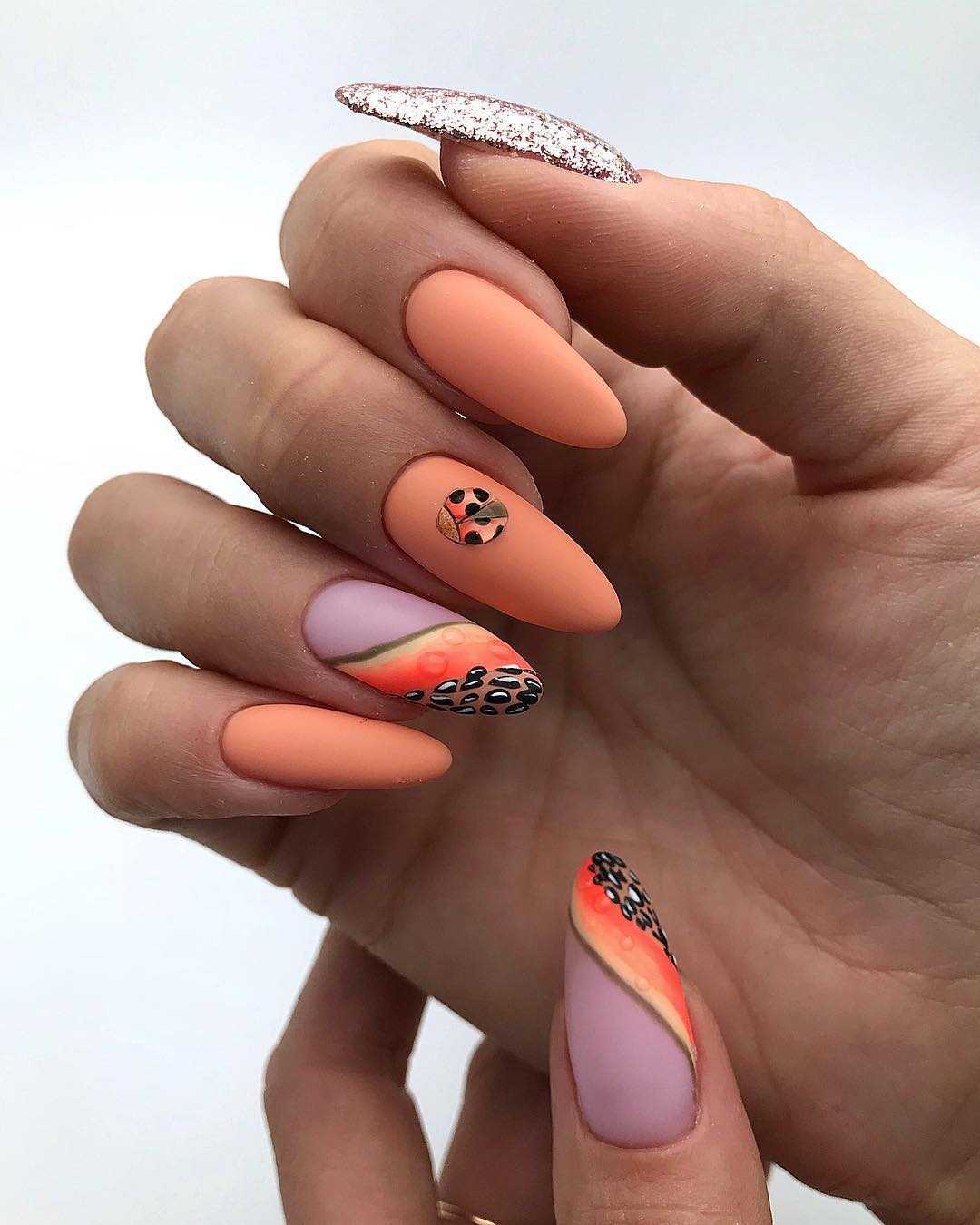 Название и сущность такого предложения полностью соответствуют друг другу. Идея такого оформления заключается в оригинальной комбинации нескольких техник одновременно. Такой маникюр выглядит немного необычно, но не оставит ваши пальчики без внимания. В качестве примера, можно покрыть несколько ноготков однотонным лаком, а на других создать мраморный маникюр. Французская классика чудесно выступает в тандеме с лунным дизайном и маникюром «рамкой». Матовое покрытие гармонично смотрится с элементами «негативного пространства» и глянцевыми деталями. Любое покрытие всегда можно украсить тематическими рисунками, характерными для лета или вообще, отдать предпочтение оригинальному маникюру «разные ручки».