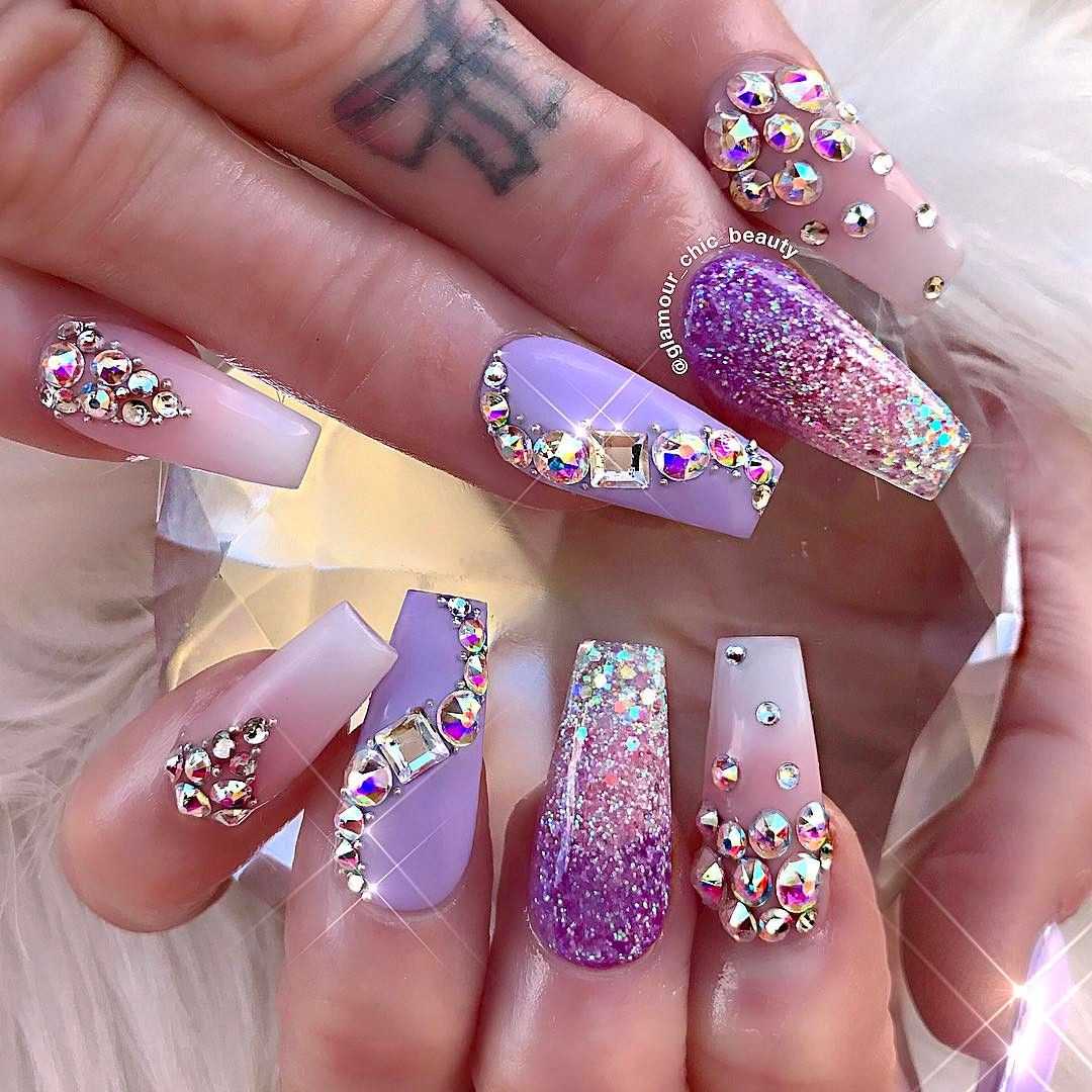 Пожалуй, самым изысканным и королевским дизайном в нашем рейтинге будет инкрустация стразами нарощенных ногтей. Если вы хотите быть главной звездой торжества, удивить всех дорогим и фешенебельным образом, выбирайте именно этот дизайн.