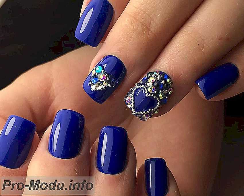 Возможно выделение лунок с помощью стразов либо покрытие всего пальца камнями, благодаря которому будет создан мягкий орнамент для праздника в голубых тонах, который подойдёт, к примеру, на выпускной.