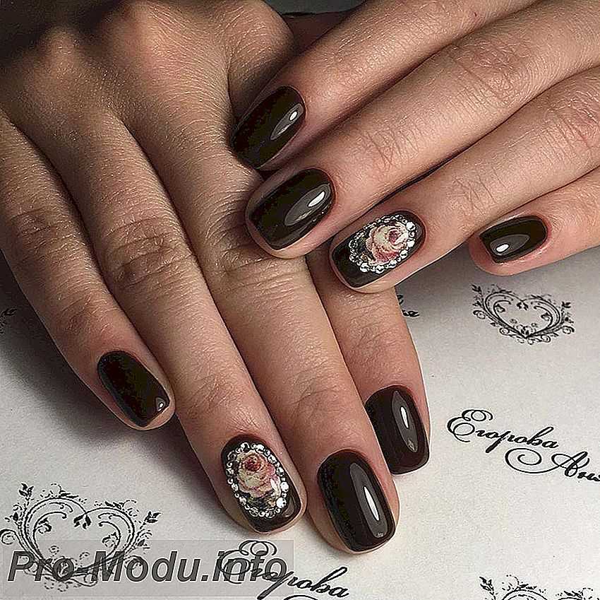 Чтоб без помощи других сделать маникюр со стразами воспользуйтесь готовыми наборами для инкрустации. В качестве основного колера используйте глянцевые лаки.