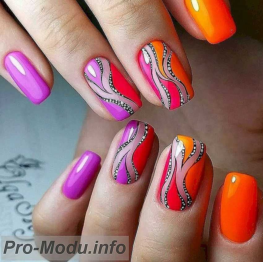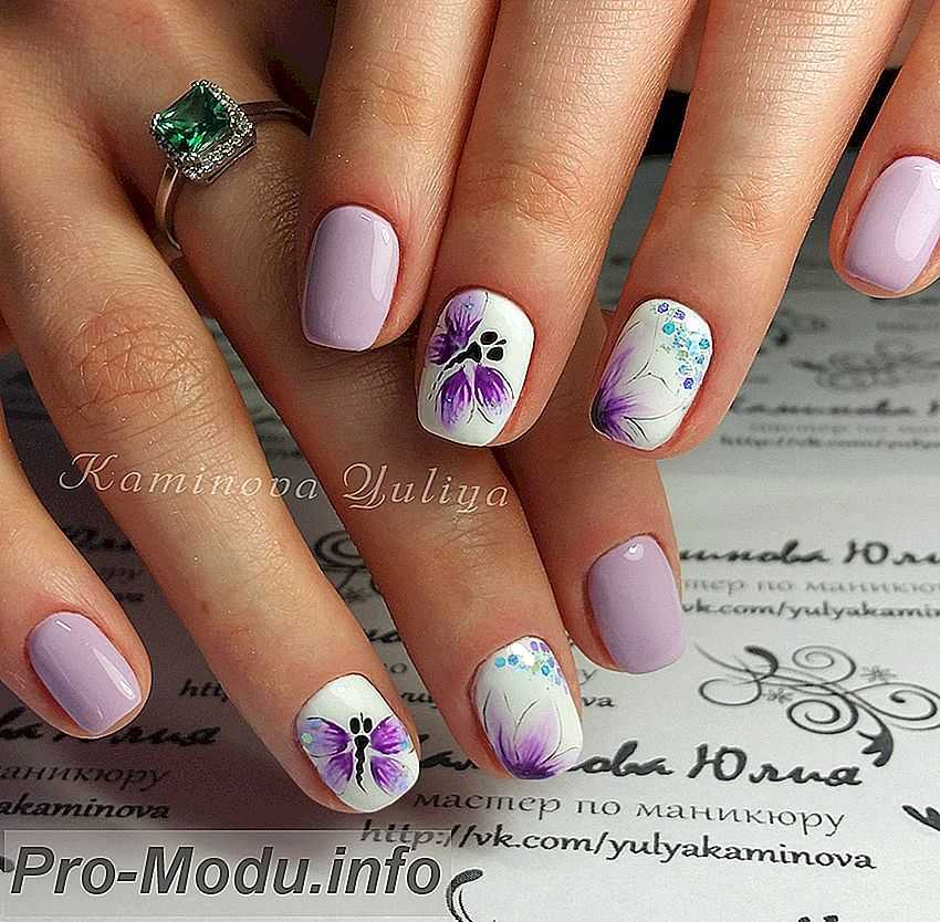 Возможно выполнение одноцветного лаконичного дизайна либо использование какого-либо дополнения для двух пальцев. В летнее время на таких ногтях неплохо выглядят любые рисунки «отпускной» тематики, абстрактные узоры, стемпинг.